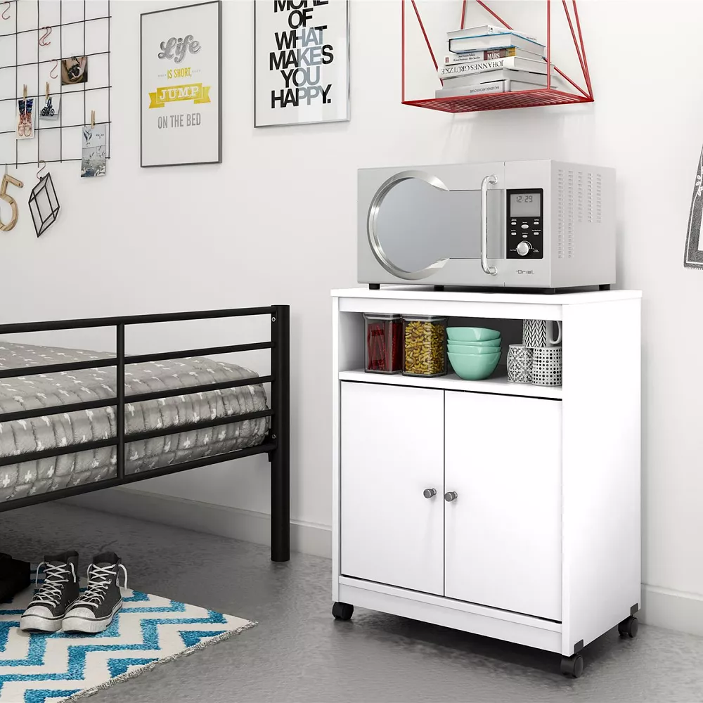 Add extra storage to your kitchen with this Ameriwood Home Good To Go Landry Microwave Cart.