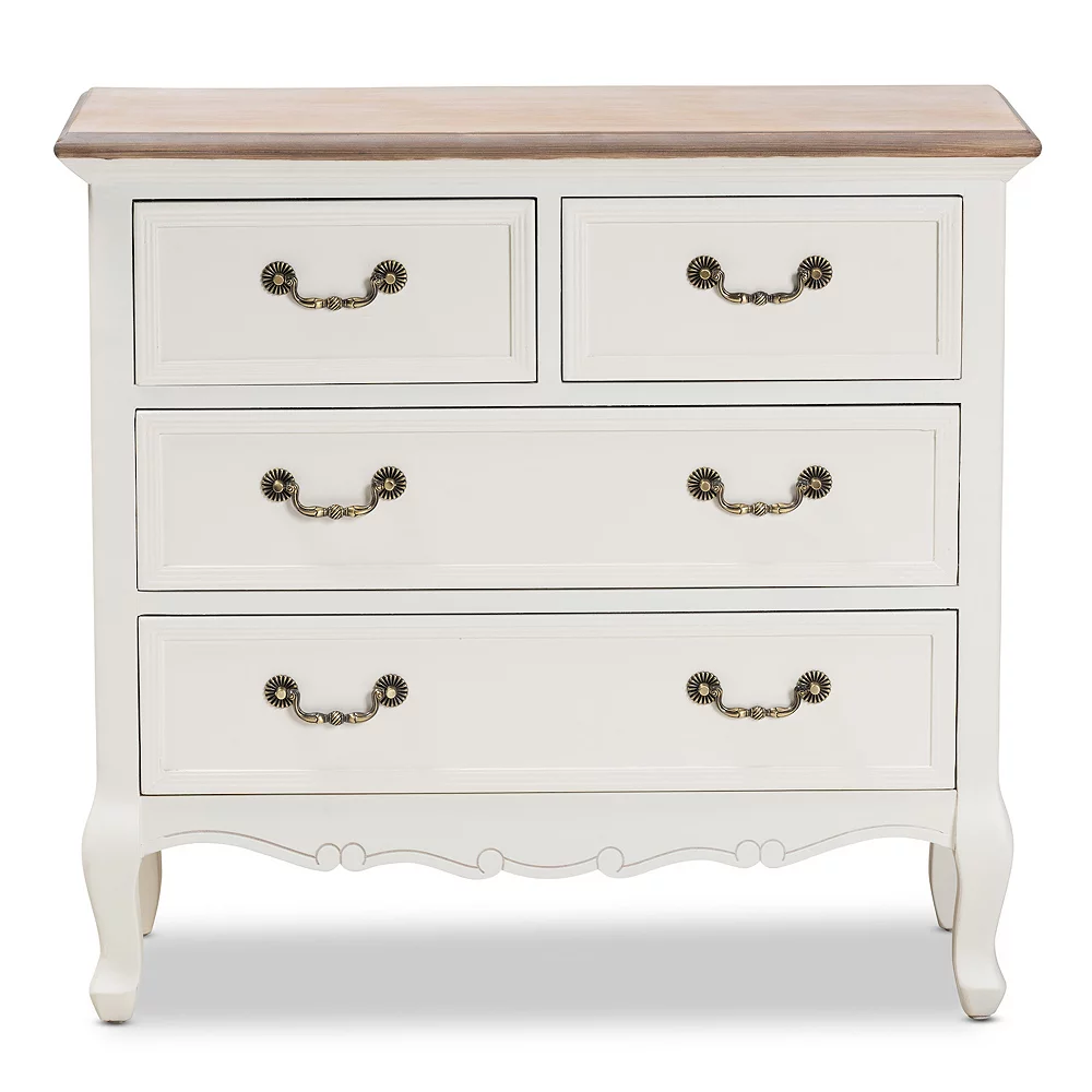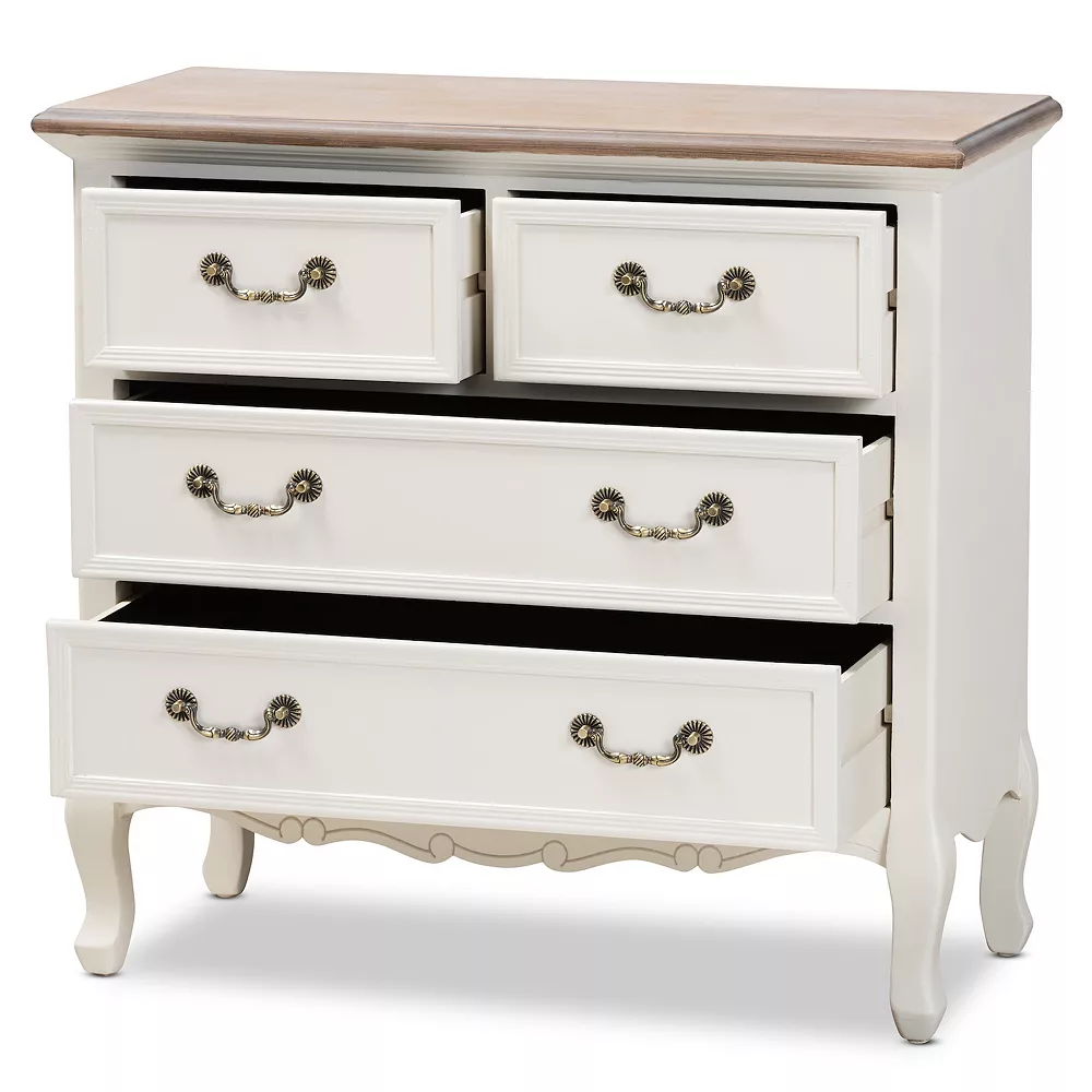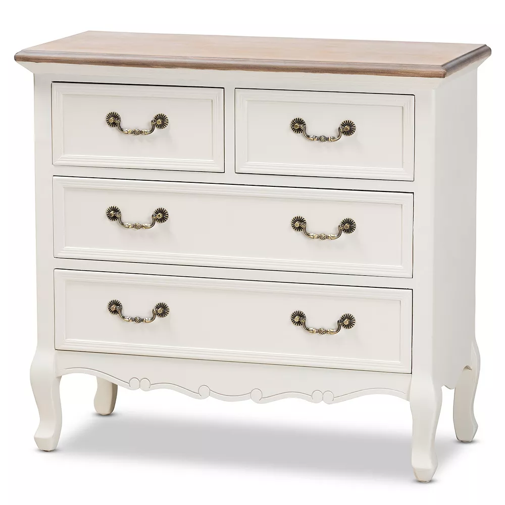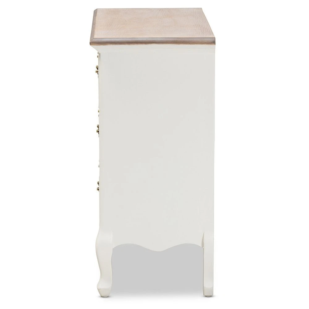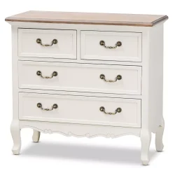 Combining vintage and contemporary style, this white storage cabinet from Baxton Studio combines form and functionality in a way sure to tie your bedroom together.