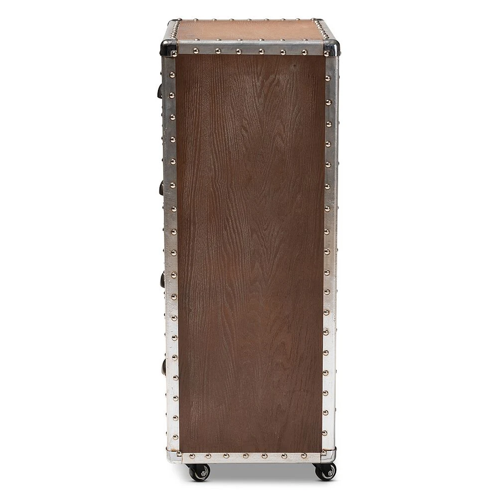 - Constructed from light brown-finished engineered wood and distressed silver-finished aluminum metal