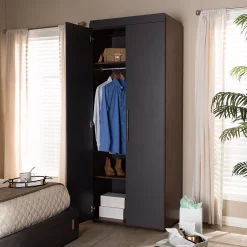 This Baxton Studio Cyrille Tall Shoe Storage Cabinet is just what you need to keep your shoes organized.