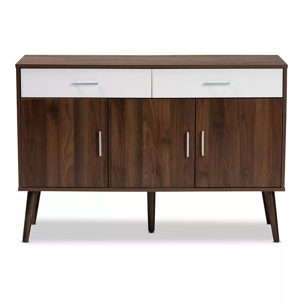 This charming Baxton Studio cabinet has ample space for your belongings and modern style to spare.