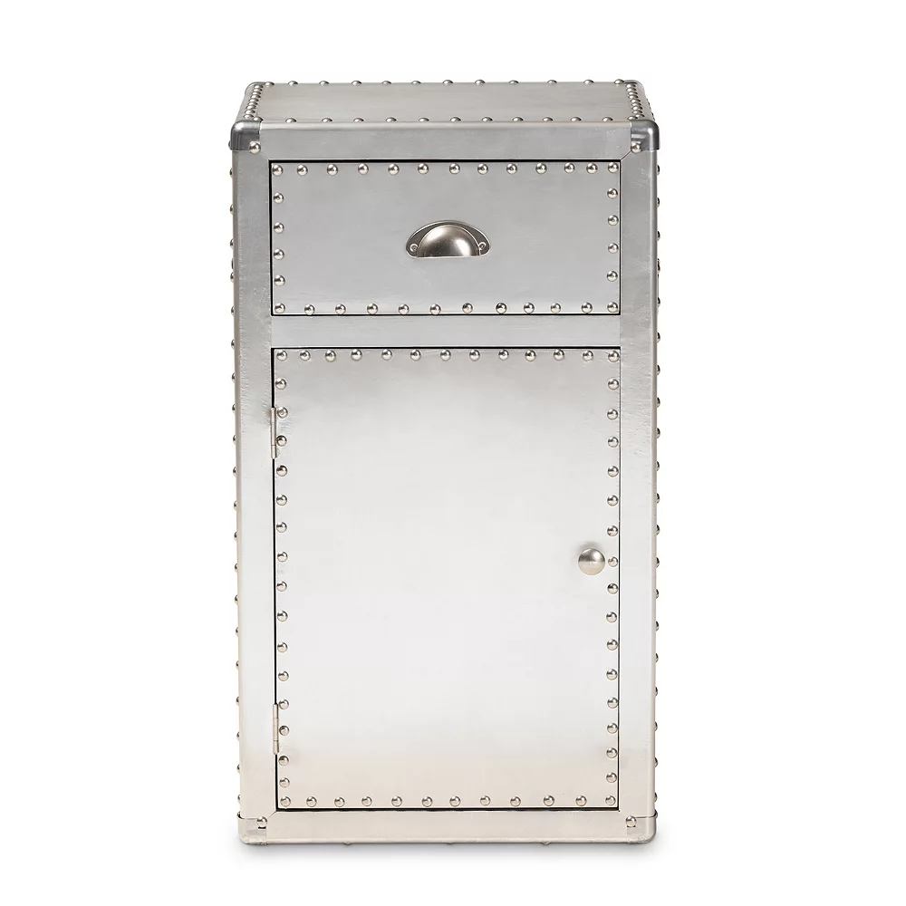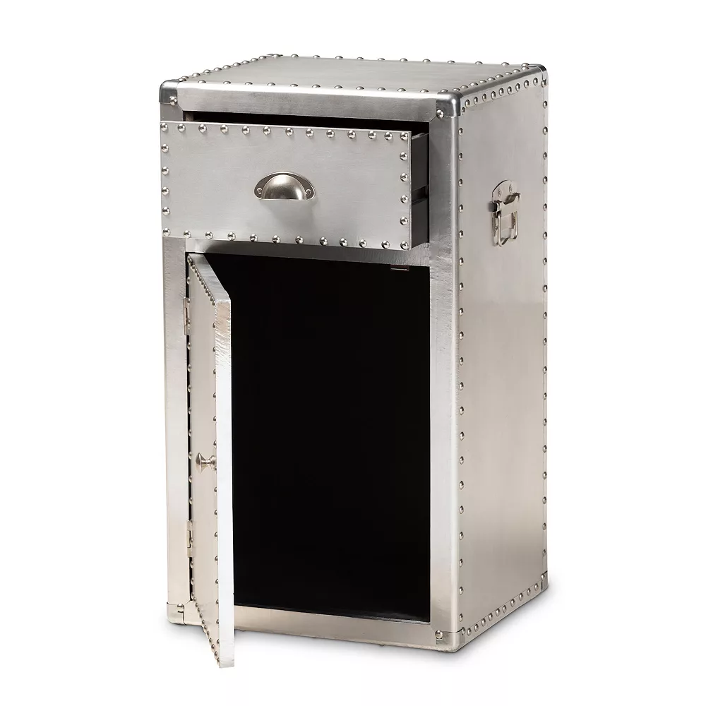 The stylish industrial cabinet with a metallic finish is great for a modern touch of style to any room of the house.