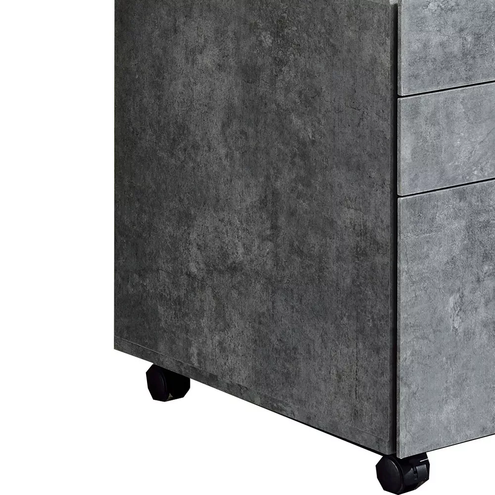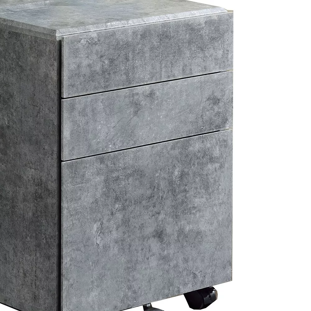 Boasting a contemporary style, this file cabinet is constructed from a combination of veneer, MDF and Particle Board. Supported on casters for mobility, it has 2 storage drawers and 1 hanging file drawer. The textured surface adds a natural look, while the rectangular top can be used for the decorative display.
