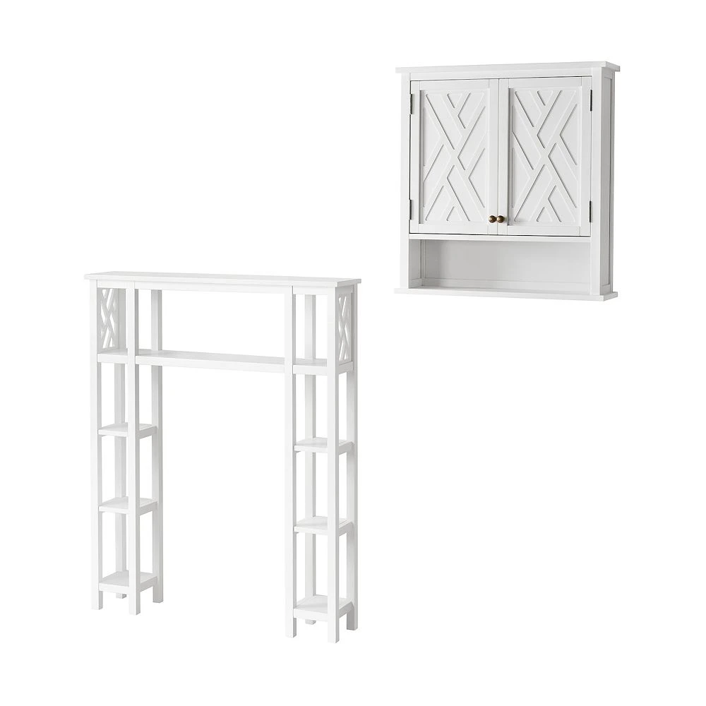 This Bolton Coventry Over Toilet Wall Mounted Cabinet with Two Doors & Open Shelf adds style and utility to your bathroom space.