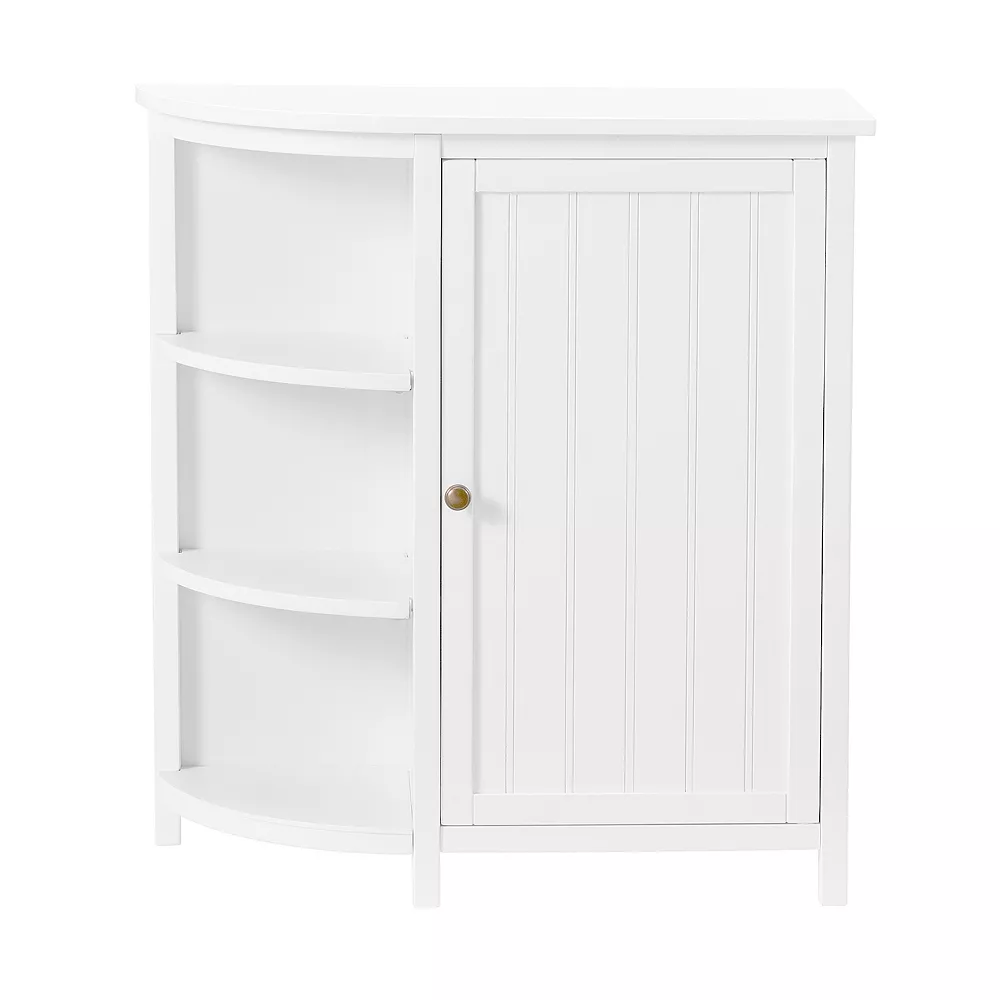 - Open shelves offer plenty of space to keep toiletries, folded towels and other decorative accessories