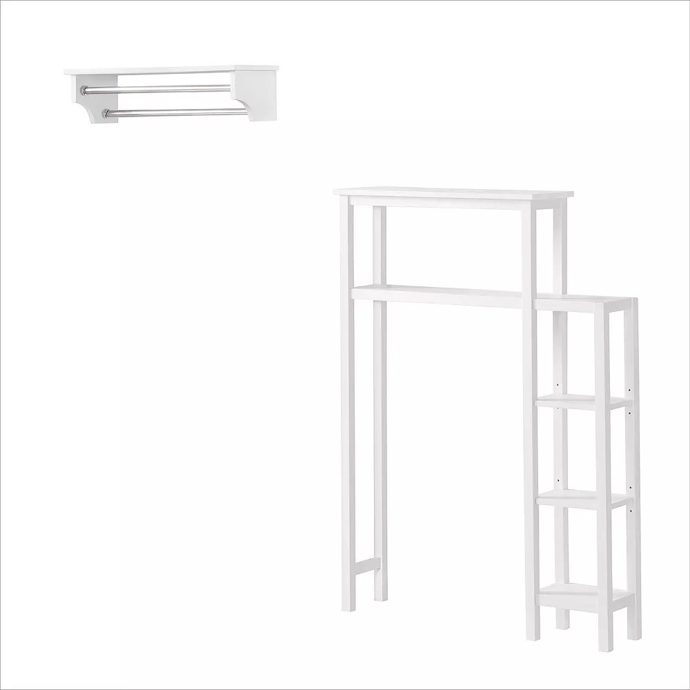 This Bolton Dover Over Toilet Organizer with Side Shelving, Bathroom Shelf with 2 Towel Rods adds style and utility to your bathroom space.
