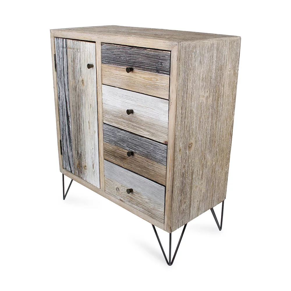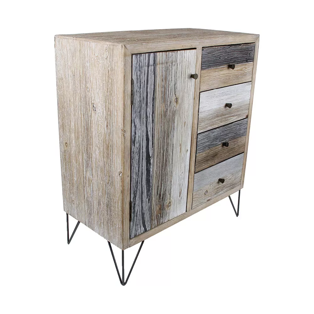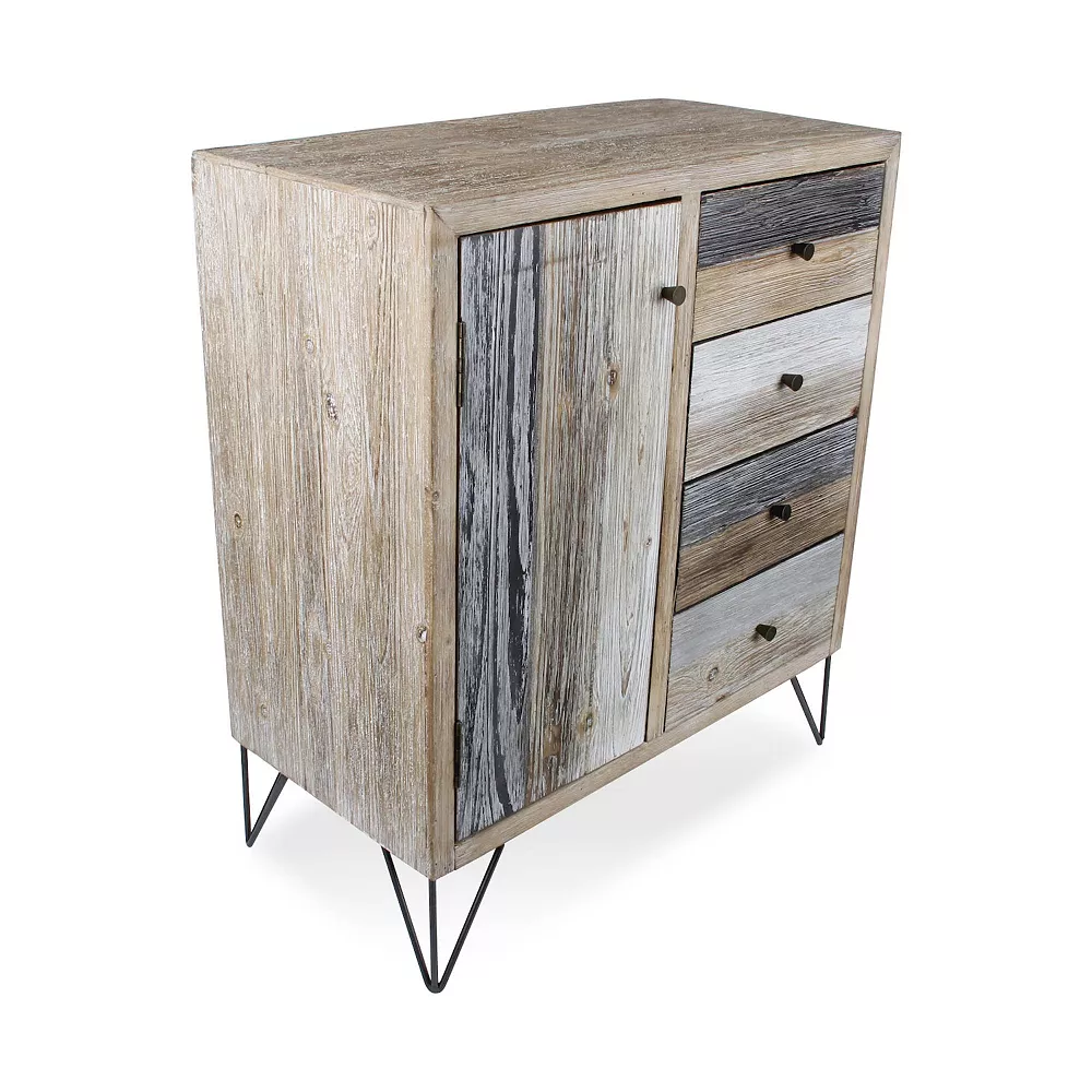 Perfect for completing a look while adding a touch of versatility, accent cabinets help fill those empty spaces while giving plenty of storage. This piece in particular features a brighter tone pallete in a wood-paneled style build with three side drawers and a two tier, side cabinet.