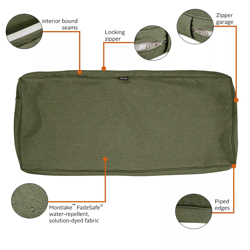 These Classic Accessories Montlake FadeSafe Patio Bench/Settee Cushion Slip Covers keep their look season after season while resisting stains and providing lasting comfort with your patio furniture!