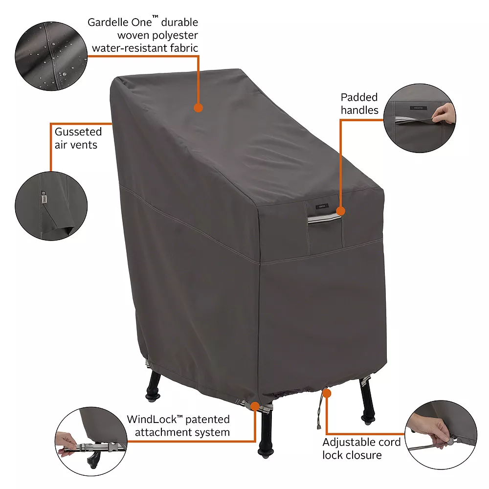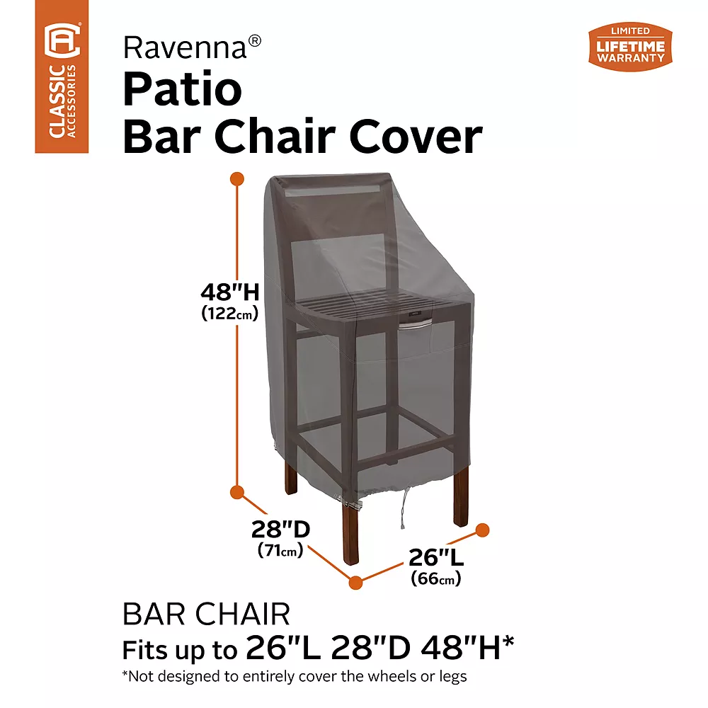 Protect your patio furniture in style with this Classic Accessories Ravenna 2-piece patio bar chair cover set.