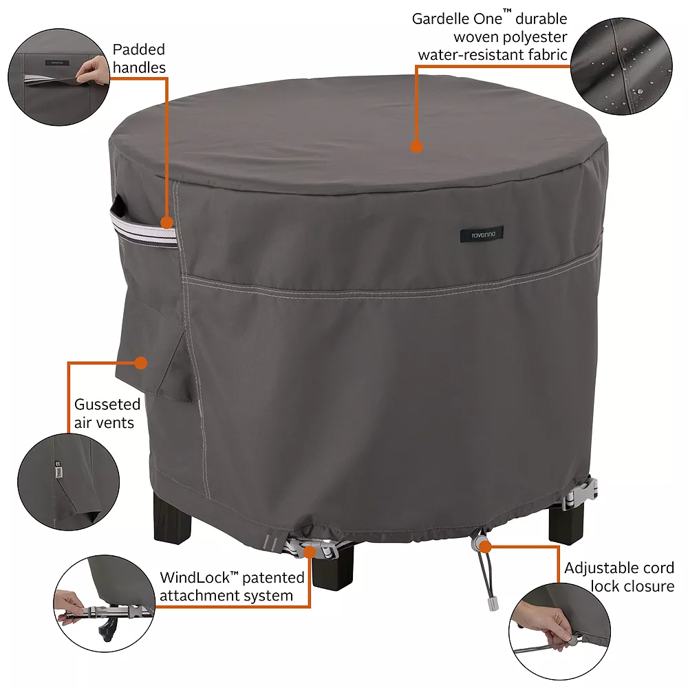 Protect your patio furniture from the elements effortlessly with this Classic Accessories Ravenna adjustable round patio ottoman cover.