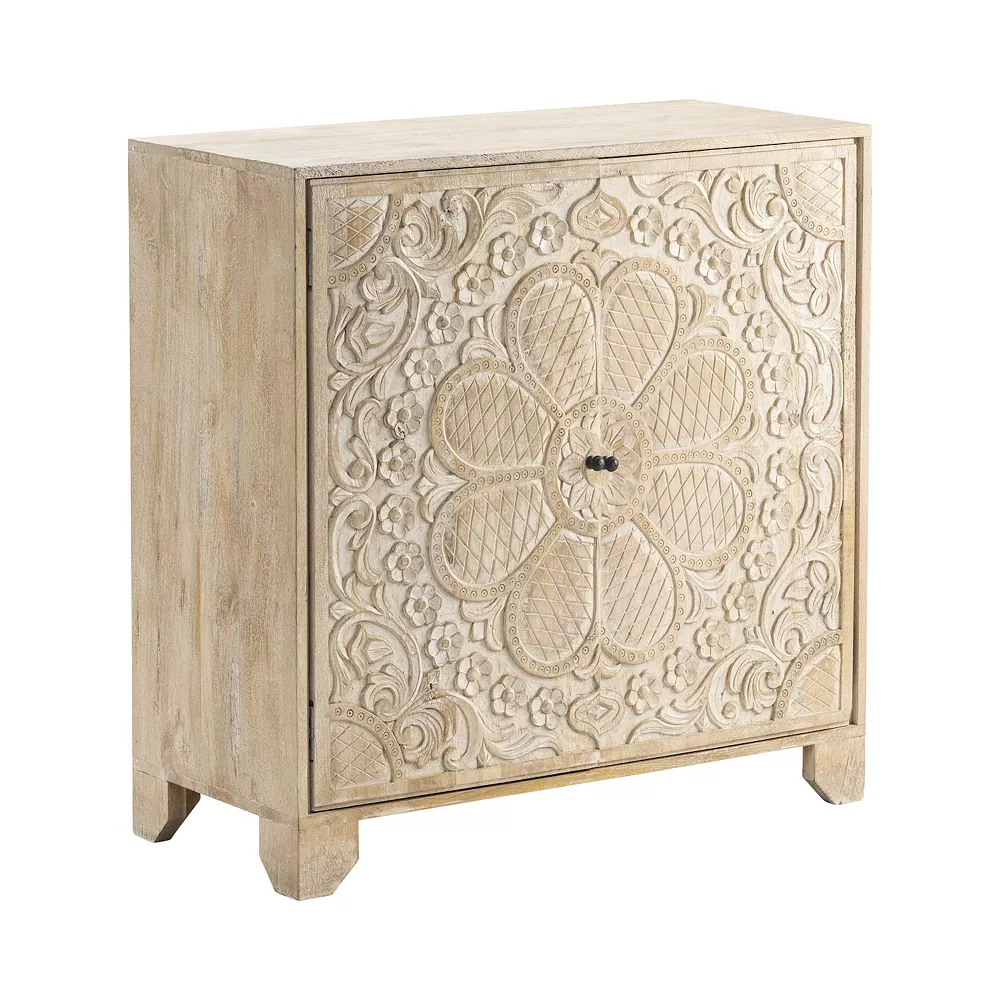 This Meadow Carved Storage Cabinet showcases sophisticated style.