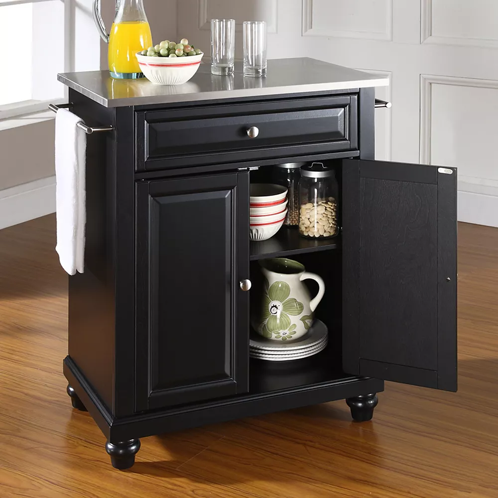 - Stainless steel top creates a stable, versatile workspace.