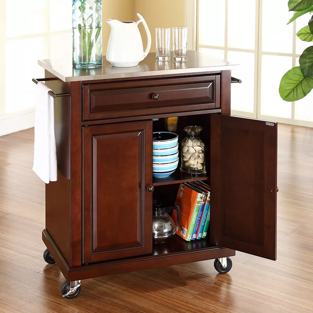 - Stainless steel top creates a stable, versatile workspace.
