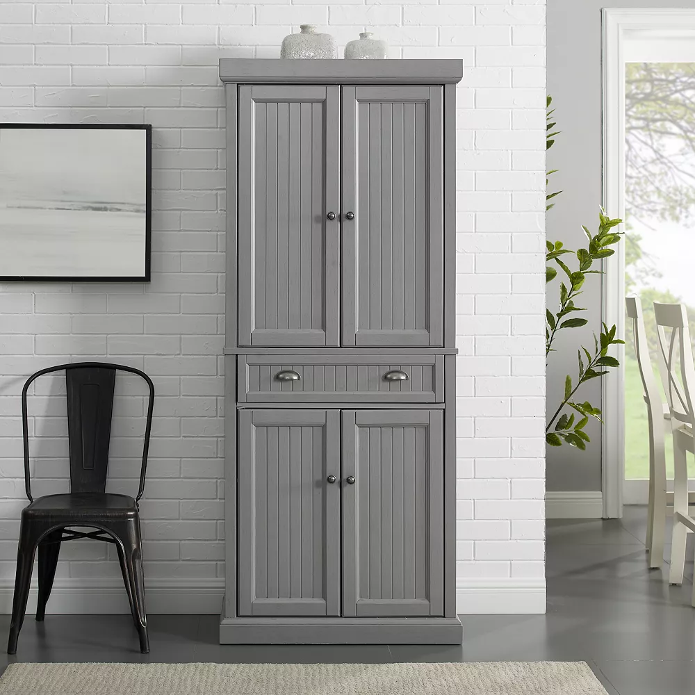Traditional coastal design is effortless with this Crosley Seaside pantry that offers plenty of space for storage.