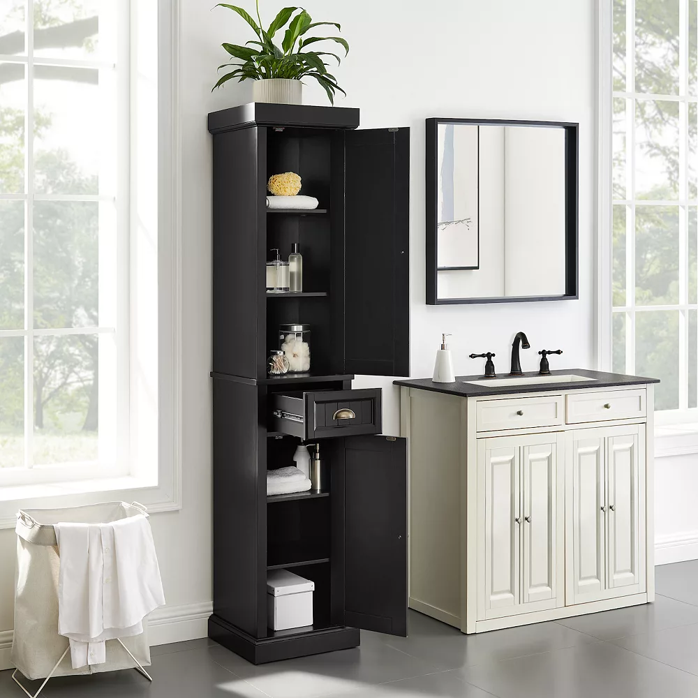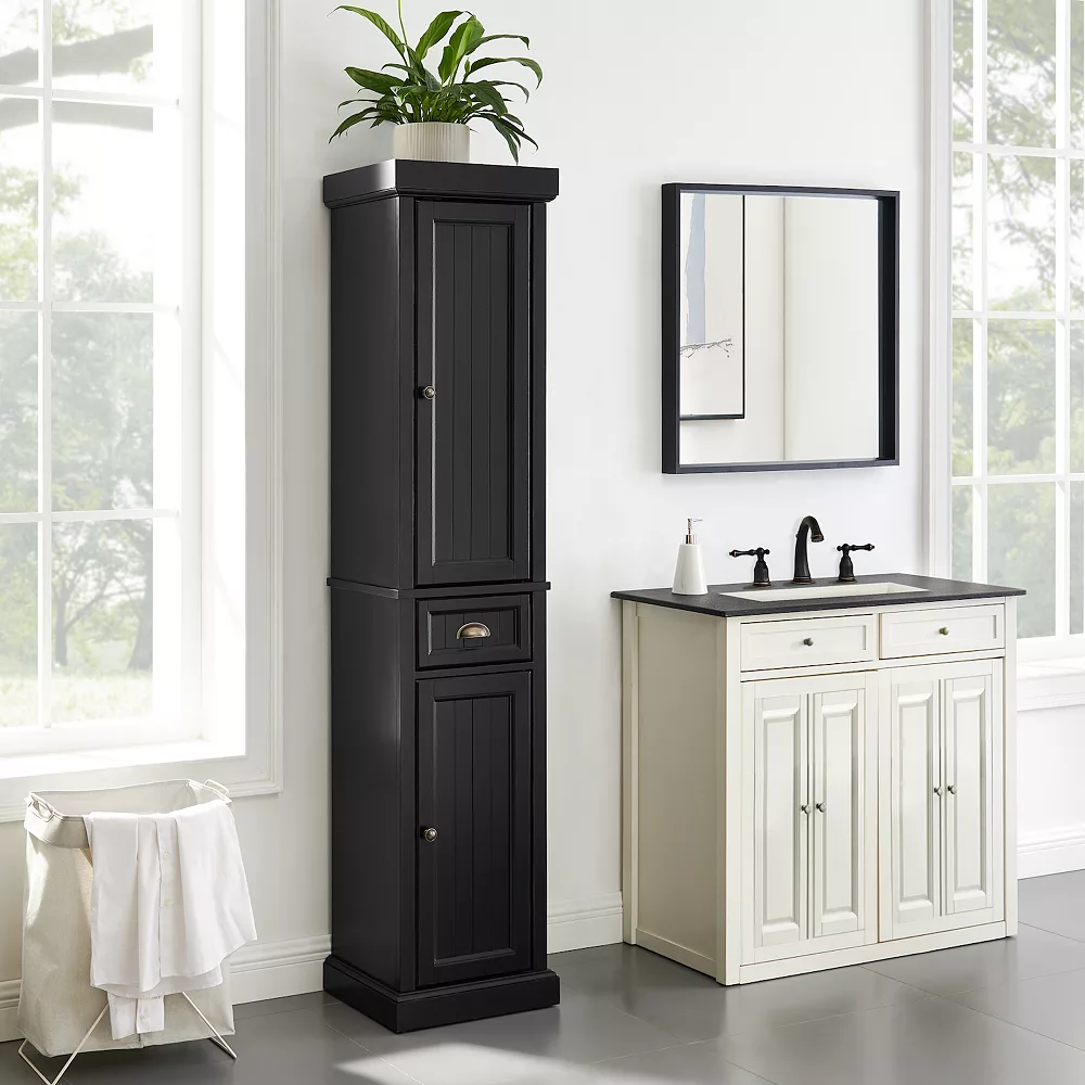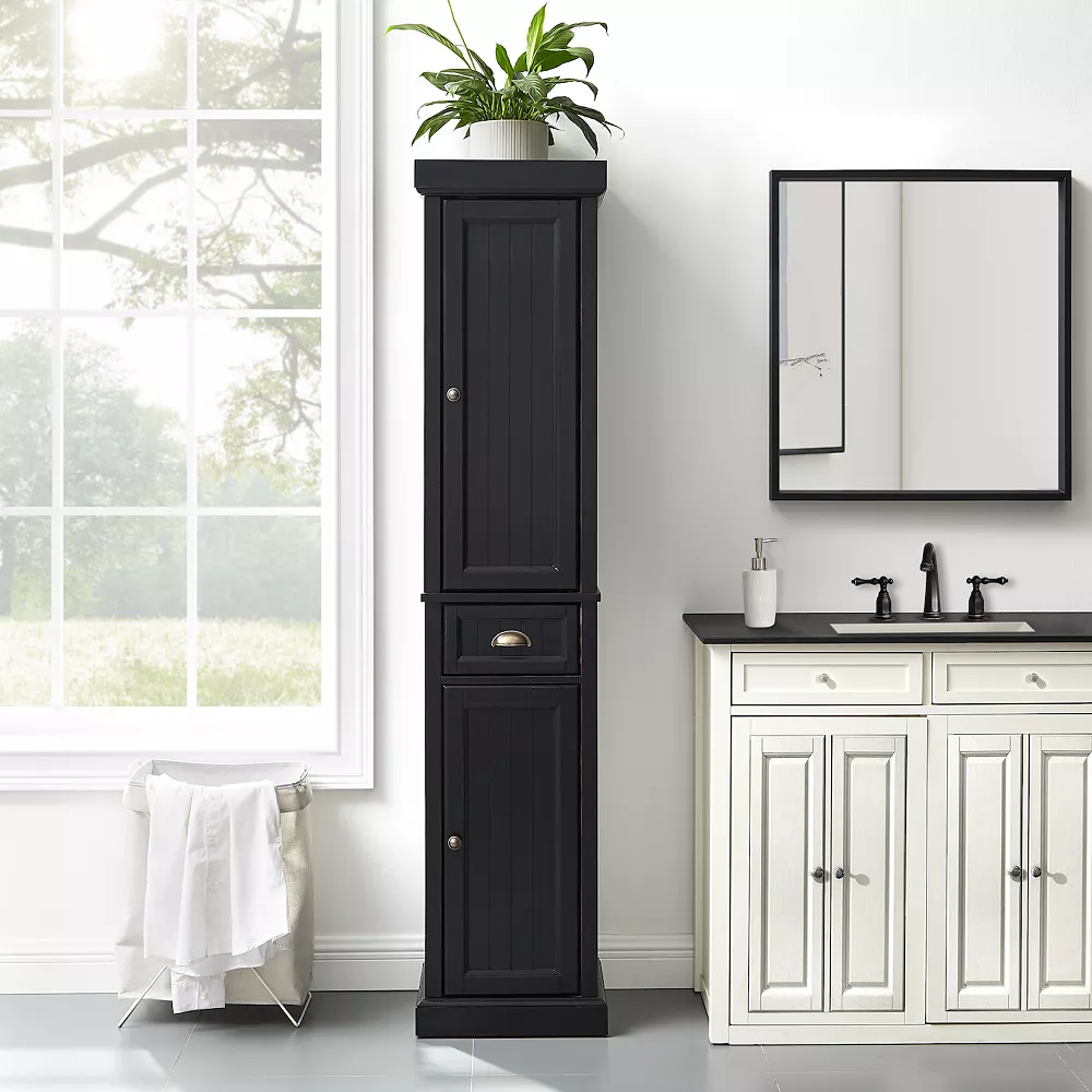 Accent your coastal home decor with this Crosley Seaside tall linen cabinet.