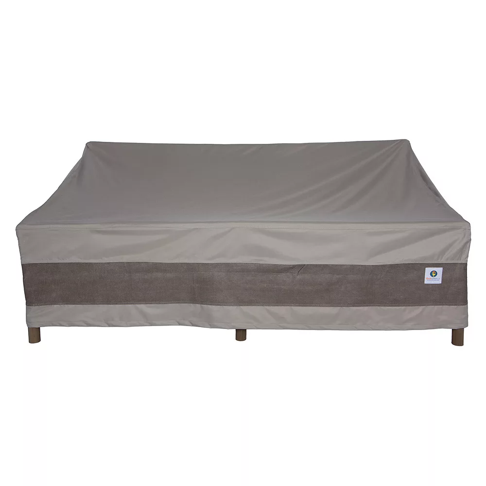 With its durable top panel and breathable side panels, this Duck Covers Elegant patio loveseat cover is ideal for moderate to harsh weather conditions.