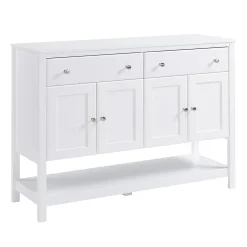- STORAGE SOLUTION: This sideboard cabinet features two enclosed cabinets, two pullout drawers, and an open bottom shelf, providing ample storage space for your daily accessories and utensils.