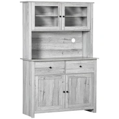 - MAKE A STATEMENT: If you spend a lot of time in the kitchen, you want a beautiful piece that you enjoy looking at and matches the theme in your home. This kitchen storage cabinet features a rustic wood grain design with glass doors that adds an old charm feel.