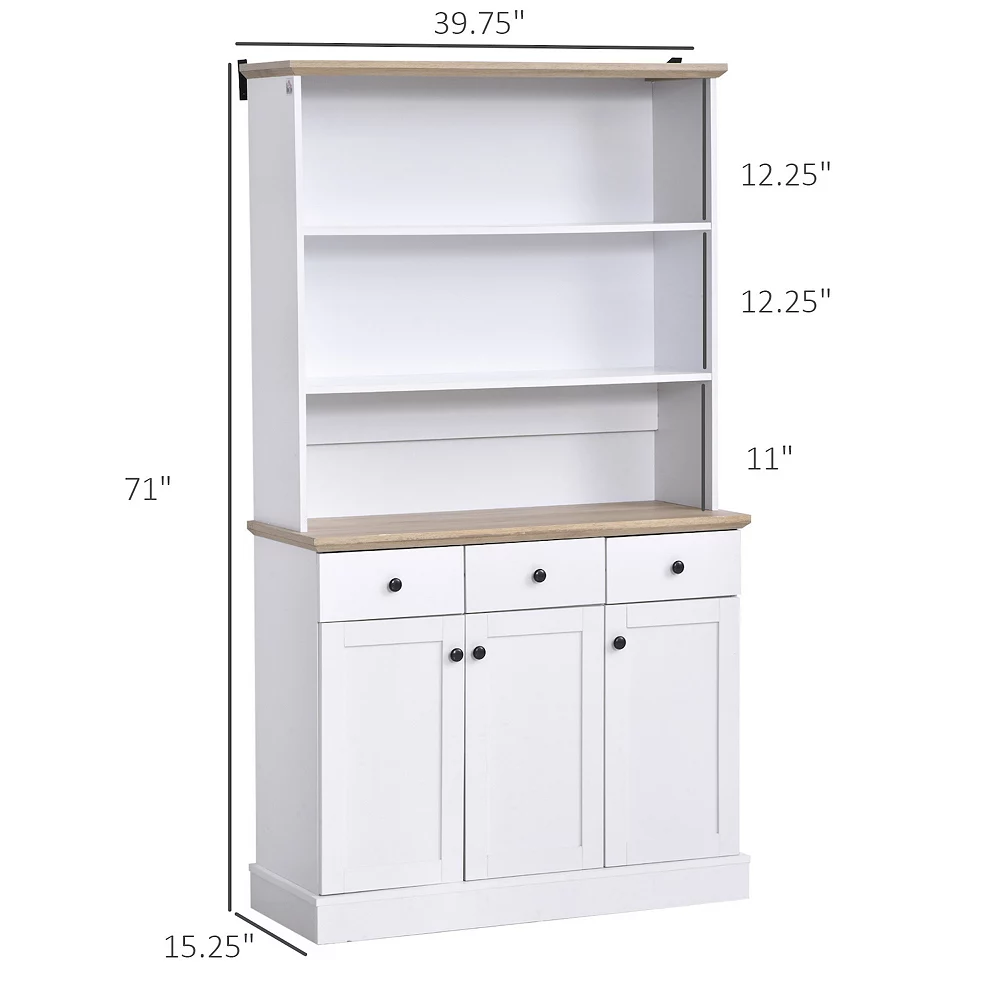- VERSATILE APPLICATIONS: Stands out for a two-tone color of wood grain veneered tops and white structure. With a neutral appearance and compact structure, this kitchen corner pantry can also be used as a storage sideboard or bookcase in the dining room, living room, or study.