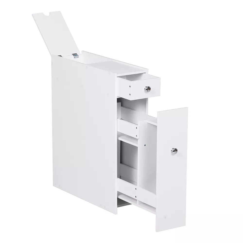 Are you looking for more bathroom storage but don’t think you have the room? Maximize space and minimize clutter with a portable slide-out floor cabinet from HomCom. It’s freestanding and narrow enough to fit in almost anywhere where cabinets or drawers might be impossible or impractical and will keep all of your bathroom accessories hidden away but still within reach. It’s perfect for a smaller or second bathroom or just as a modern looking solution to common storage problems anywhere.