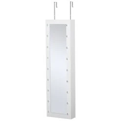 This elegant jewelry cabinet from HOMCOM is perfect for organizing and storing your favorite rings, necklaces, bracelets, cosmetics and other accessories. Designed for either wall mounting or over-the-door mounting, it can greatly save the floor space. Equipped with 18 LED bulbs to provide you with bright lights. With this stylish and functional mirrored jewelry box, you can choose your jewelry and do makeup easily in the morning without the frustration of looking for missing pieces!