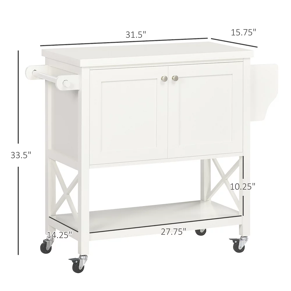 - Portable Kitchen Island Dimensions: 31.5″ L x 15.75″ W x 33.5″ H, Weight Capacity: 110 lbs. Assembly required