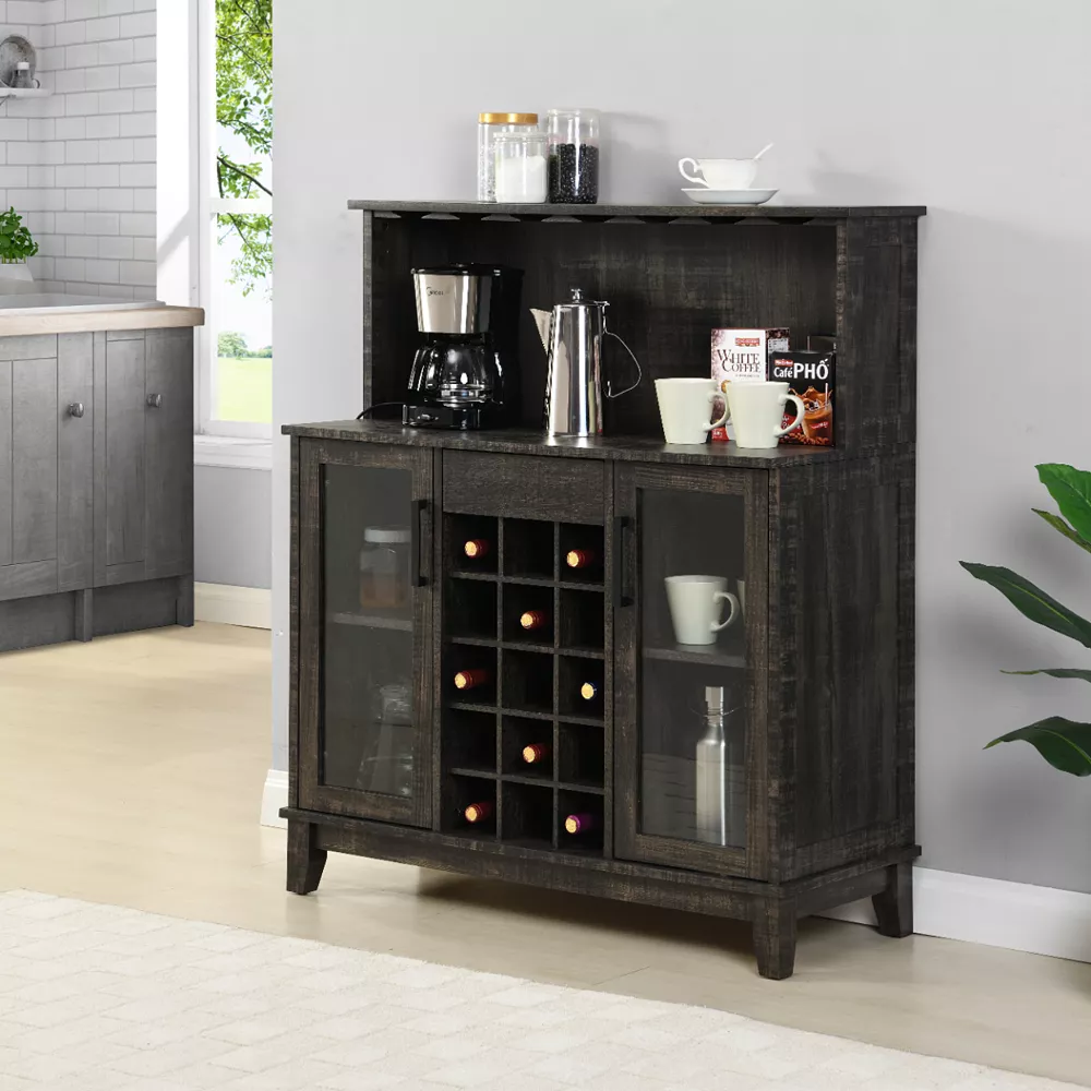 - Holds up to 15 bottles of wine