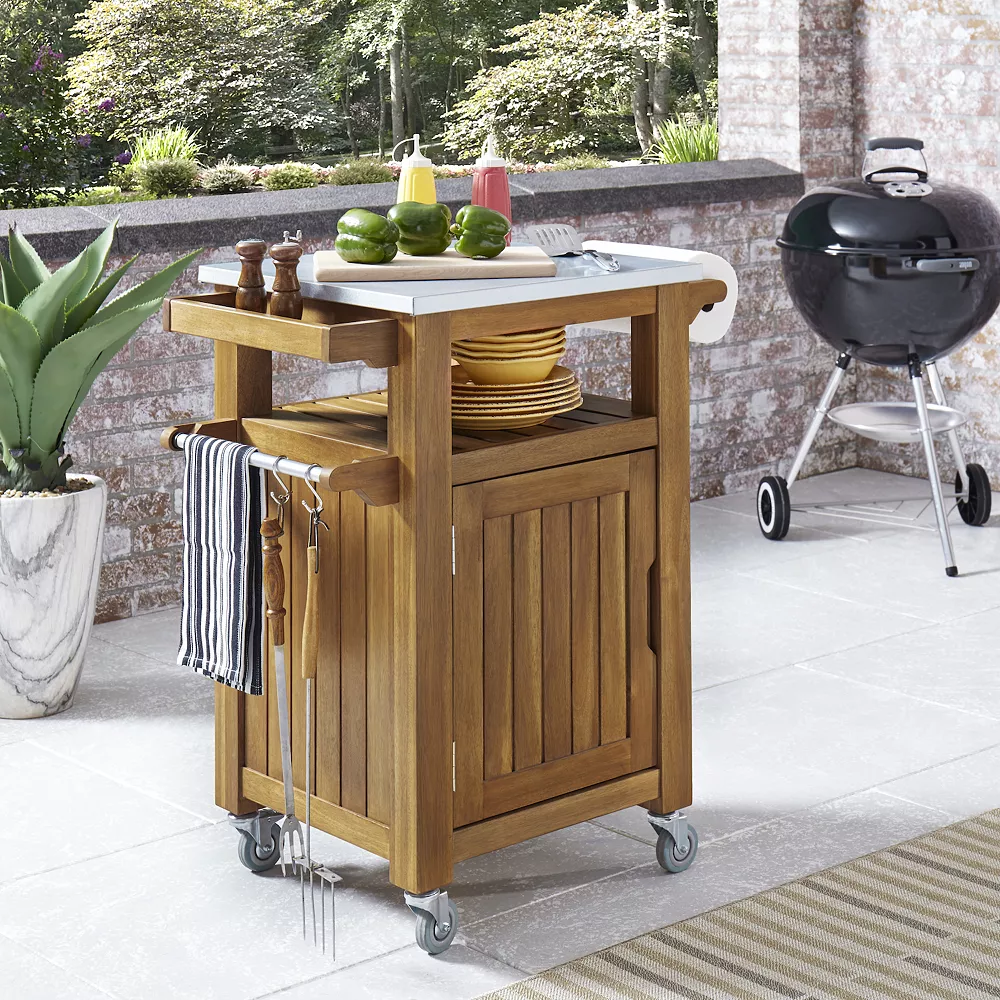 Finish your outdoor space with this homestyles Maho Outdoor Kitchen Cart.