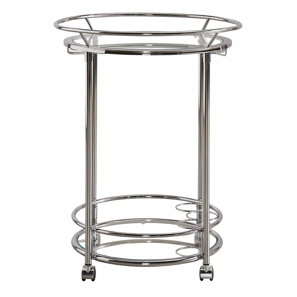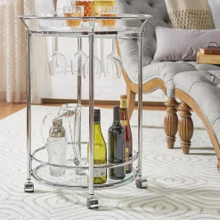 Featuring glass shelves and two wine racks, this HomeVance Martina Bar Car adds a classy touch to your home.