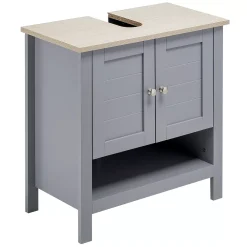 Maximizing space in your bathroom has never been more accessible, thanks to this under-sink cabinet from kleankin. An elegant style and grey color give it an easy and versatile feel that blends easily into the room. The bathroom cabinet is made from MDF board for supreme strength, with the ‘U’ cut out, allowing it to slot in snugly around the sink and pipes. The adjustable shelf inside the storage cabinet can cater to your different storage needs. Get the most out of your bathroom space with kleankin.