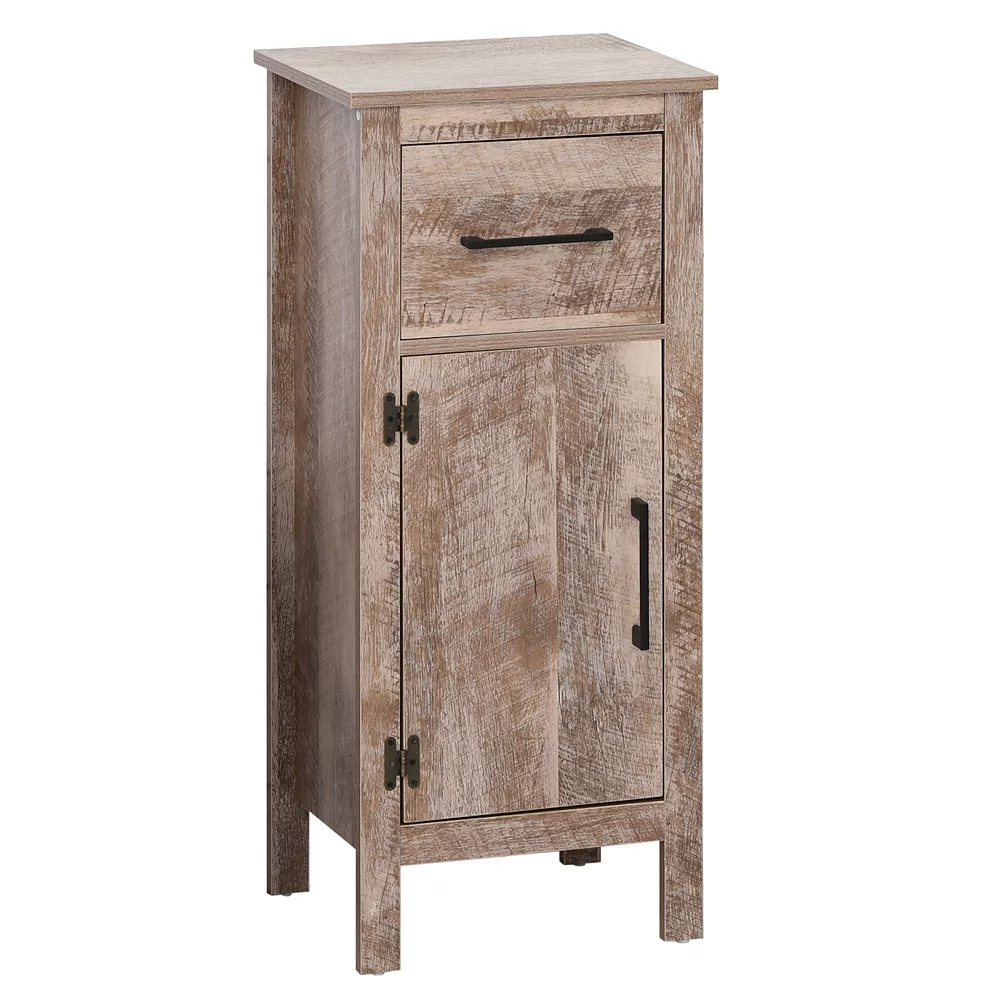 This kleankin bathroom cabinet is designed to blend in any modern bathroom. Its compact design is ideal for a small bathroom where space is limited and it provides enough storage space for bathroom essentials. A cabinet organizer with a door will effectively prevent your items from getting wet. Wood construction covered with retro wood grain makes this storage piece an attractive addition.