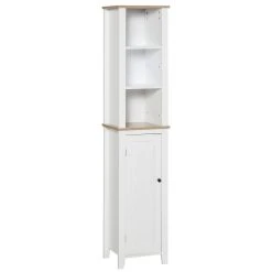 Maximize space and minimize clutter with this modern-style bathroom cabinet from kleankin. Made into a slim tower design, it is able to fit into tighter spaces with ease. Crafted from MDF board to ensure sturdiness, it features 3 open shelves and a cabinet, offering plenty of room for you to store and organize towels, toiletries, and more. making This bathroom storage pantry is great for use in shared households and is finished with an anti-toppling device on the back to prevent it from falling forwards.