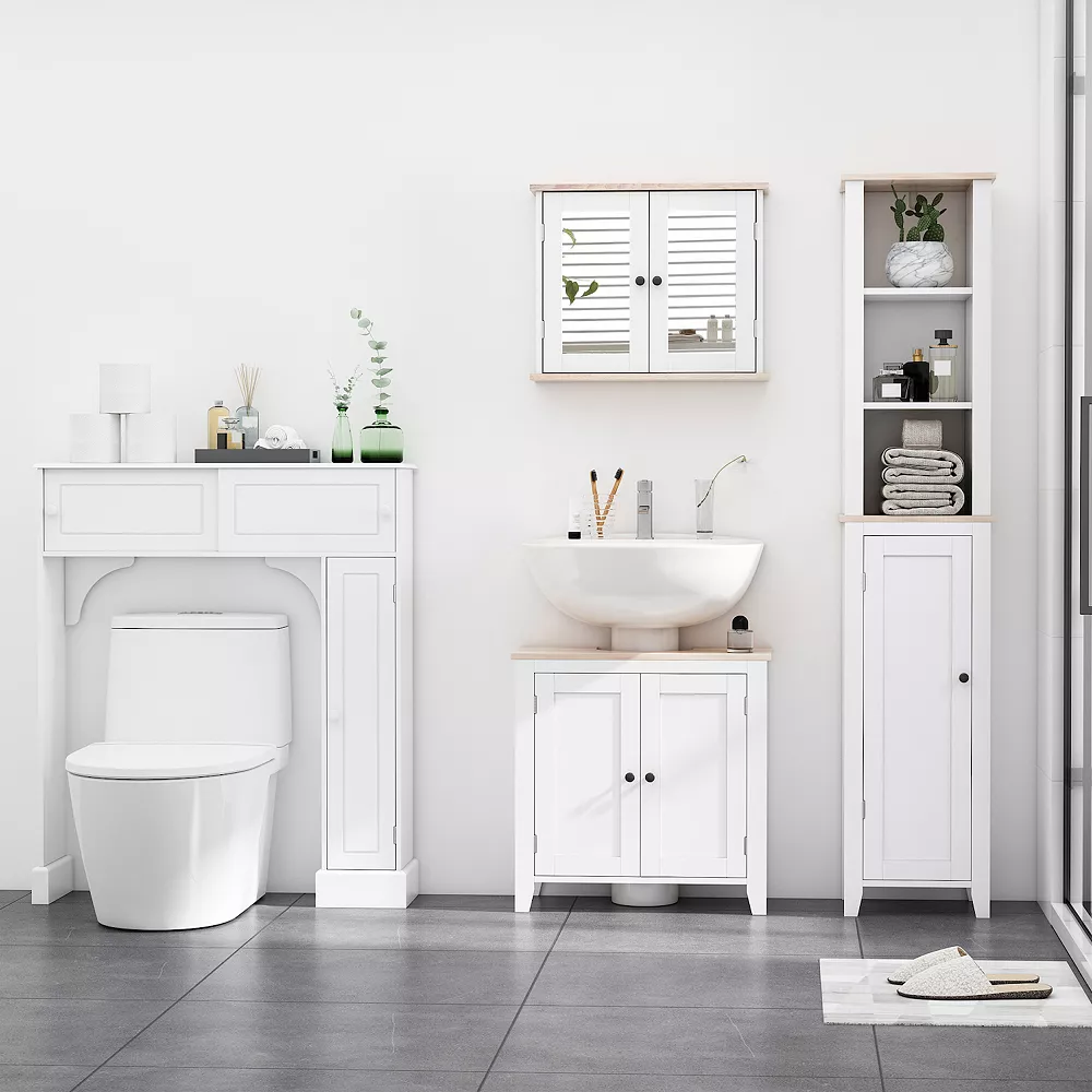 Maximizing space in your bathroom has never been easier, thanks to this under-sink cabinet from kleankin. A modern design and white color give it an easy and versatile feel which blends into the room with ease. This bathroom storage cupboard is made from a P2 grade MDF board for supreme strength, with the ‘U’ cut out allowing it to slot in snuggly around the sink and pipes. Adjustable shelves inside the cabinet could cater to your different storage needs.