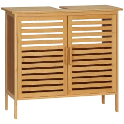 - Slatted Doors: The slatted door keeps items inside ventilated from odor and dirt and makes the bathroom floor cabinet stylish.