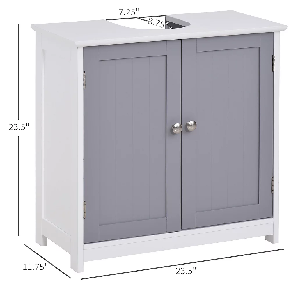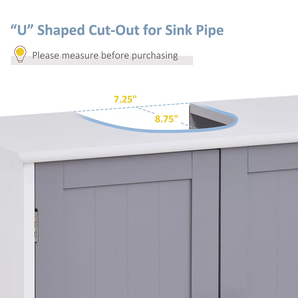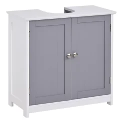 Maximizing space in your bathroom has never been easier, thanks to this under-sink cabinet from kleankin. With an elegant style, the white and grey color gives this bathroom storage cabinet an easy and versatile feel which blends into the room with ease. The storage cabinet made from MDF board for strength, with the U cut out allowing it to fit easily around your sink and pipes. Adjustable shelves inside could cater to your various storage needs. Save space while maximizing your storage space with this under-sink bathroom cabinet from kleankin.