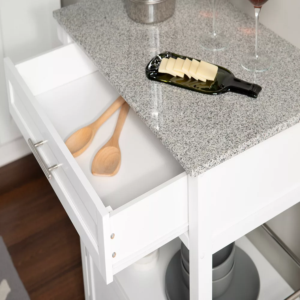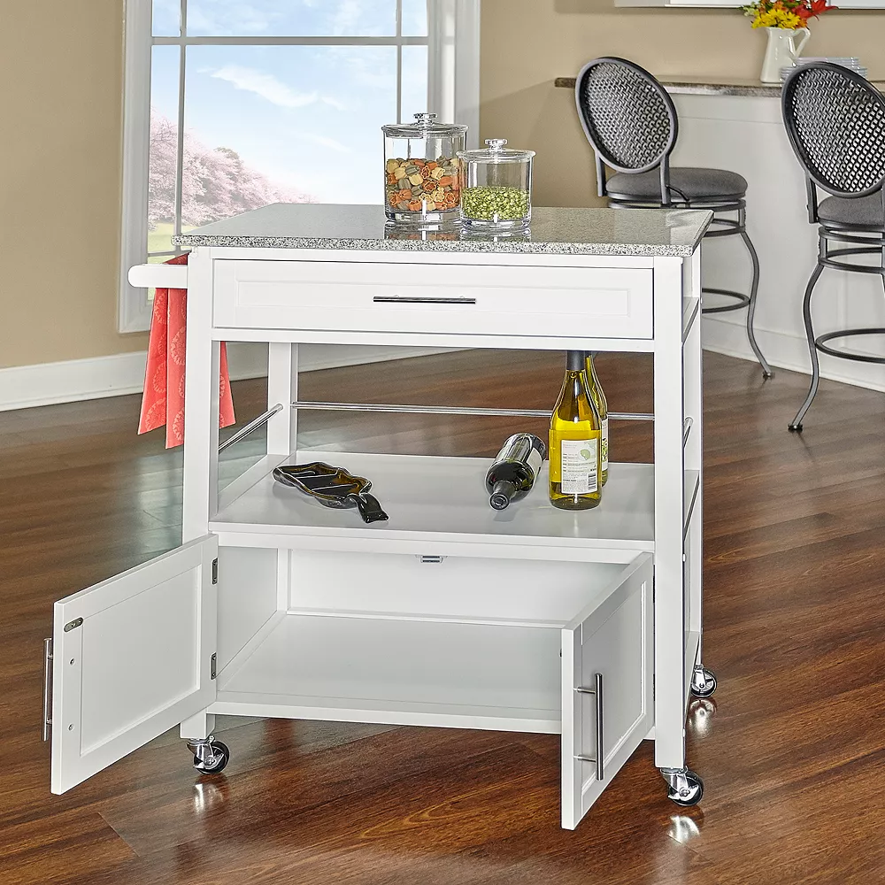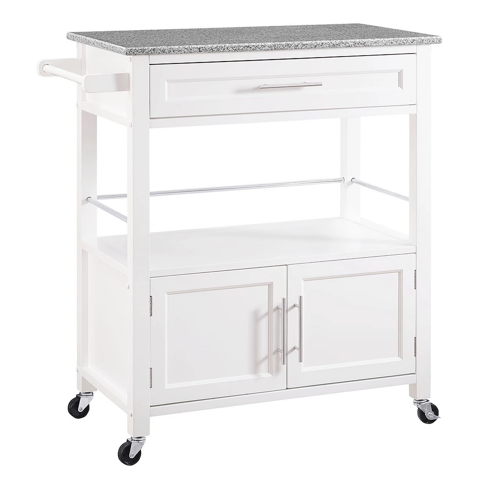 With its granite top, this Linon Cameron rolling kitchen cart offers a stylish storage option for your kitchen or dining room.