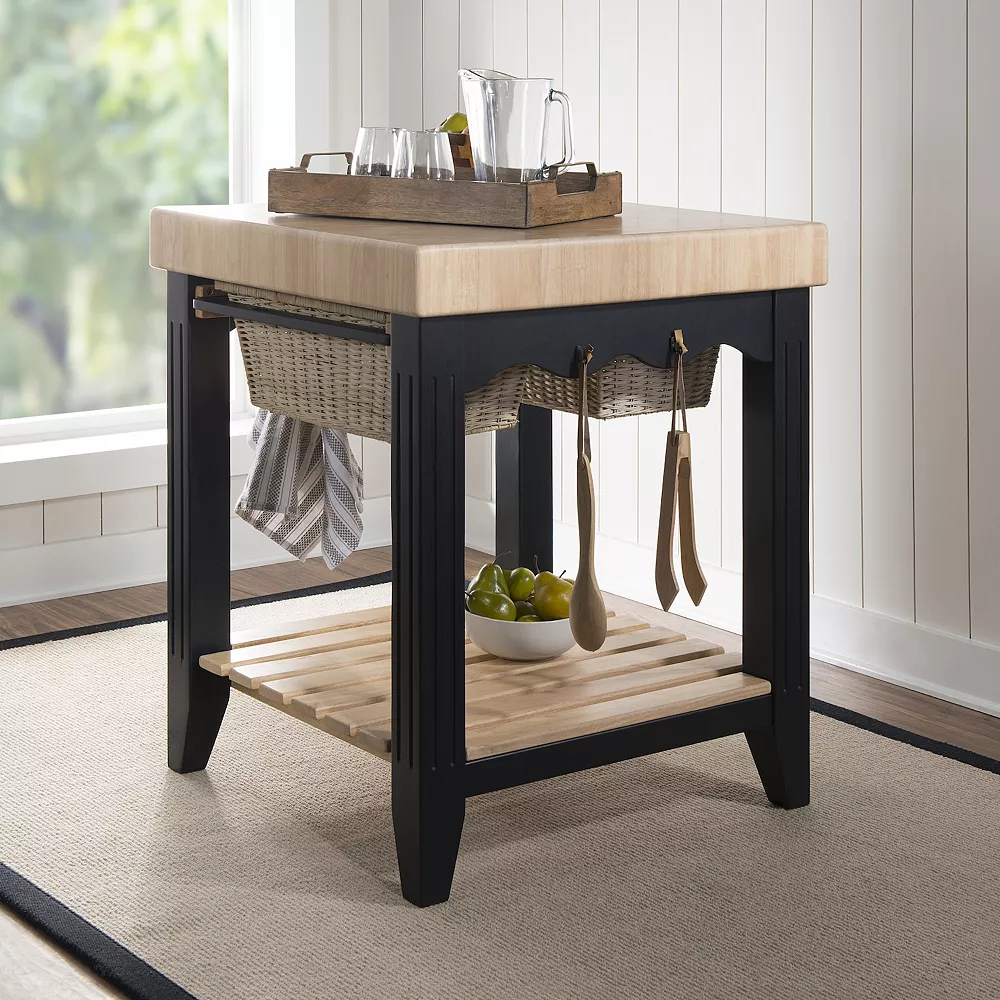 Add extra storage and counter space to your kitchen with this Linon Color Story Butcher Block Kitchen Island.