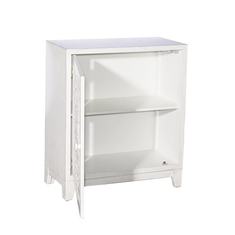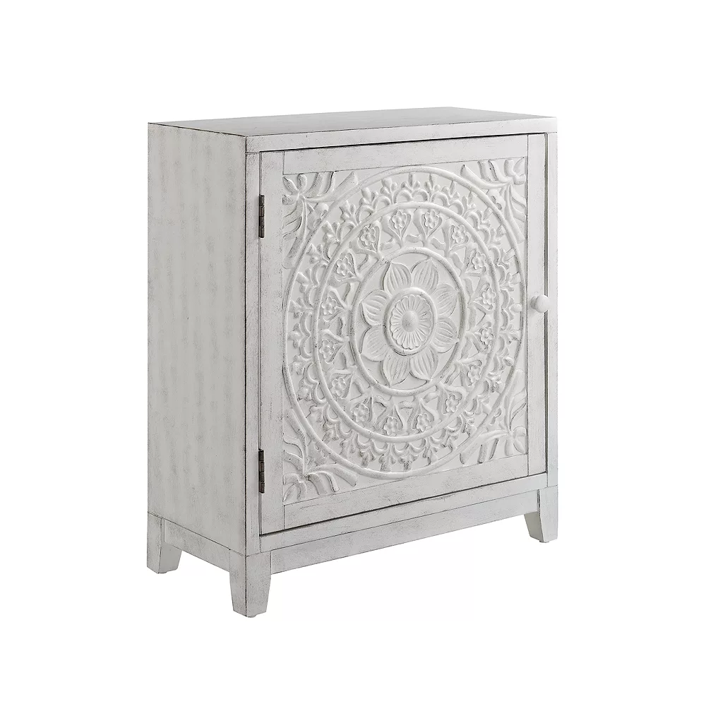 Featuring an intricate design, this Linon Grace Storage Cabinet takes your decor up a notch.