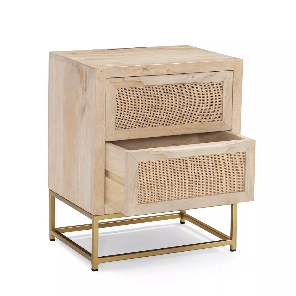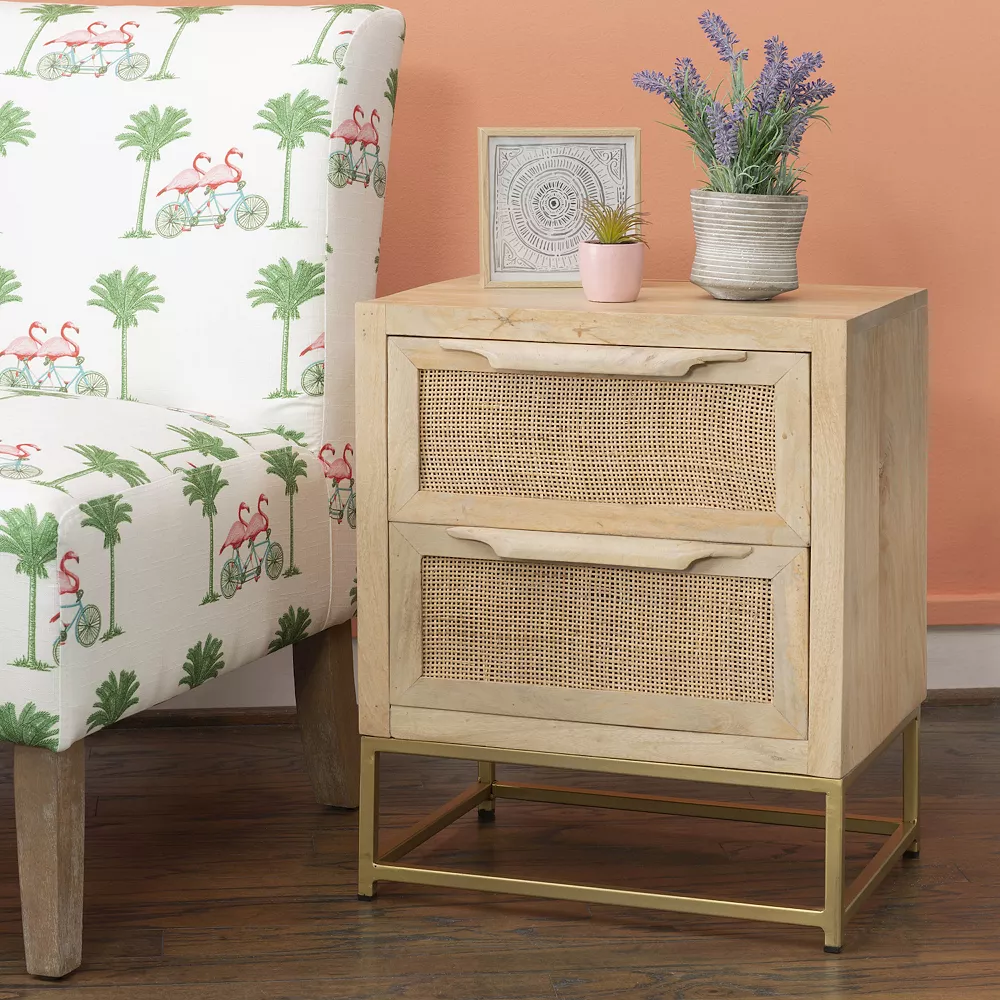 Enhance the look and feel of your living space with this Linon Janie Rattan 2-Drawer cabinet.