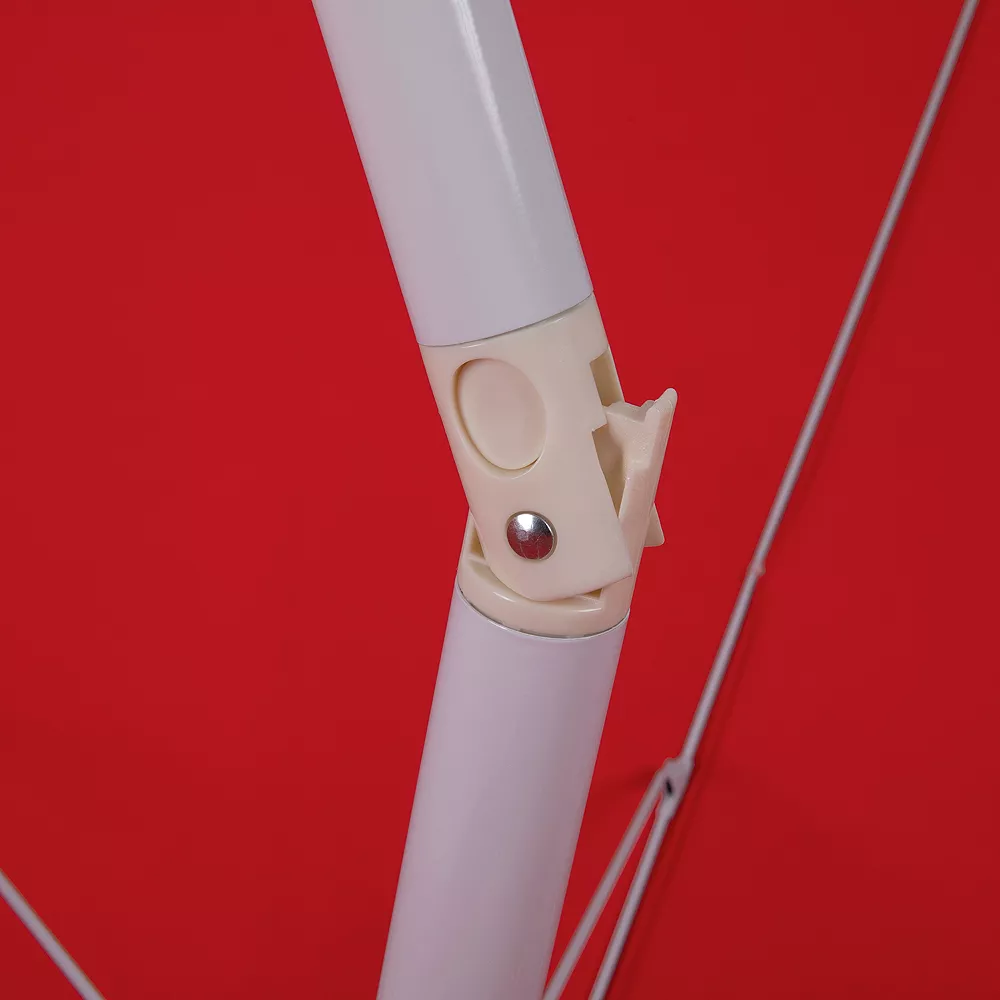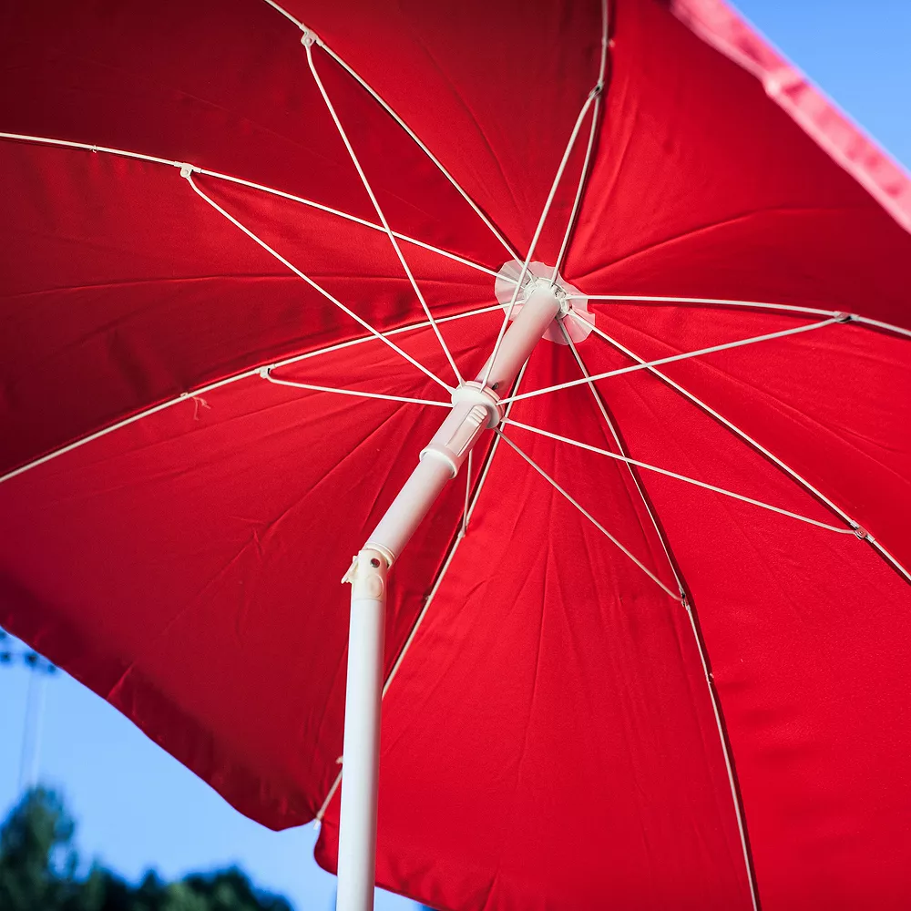 - Two-piece, 1.25″ diameter steel pole with 155-degree tilt feature and pointed end for easier penetration into sand or grass.