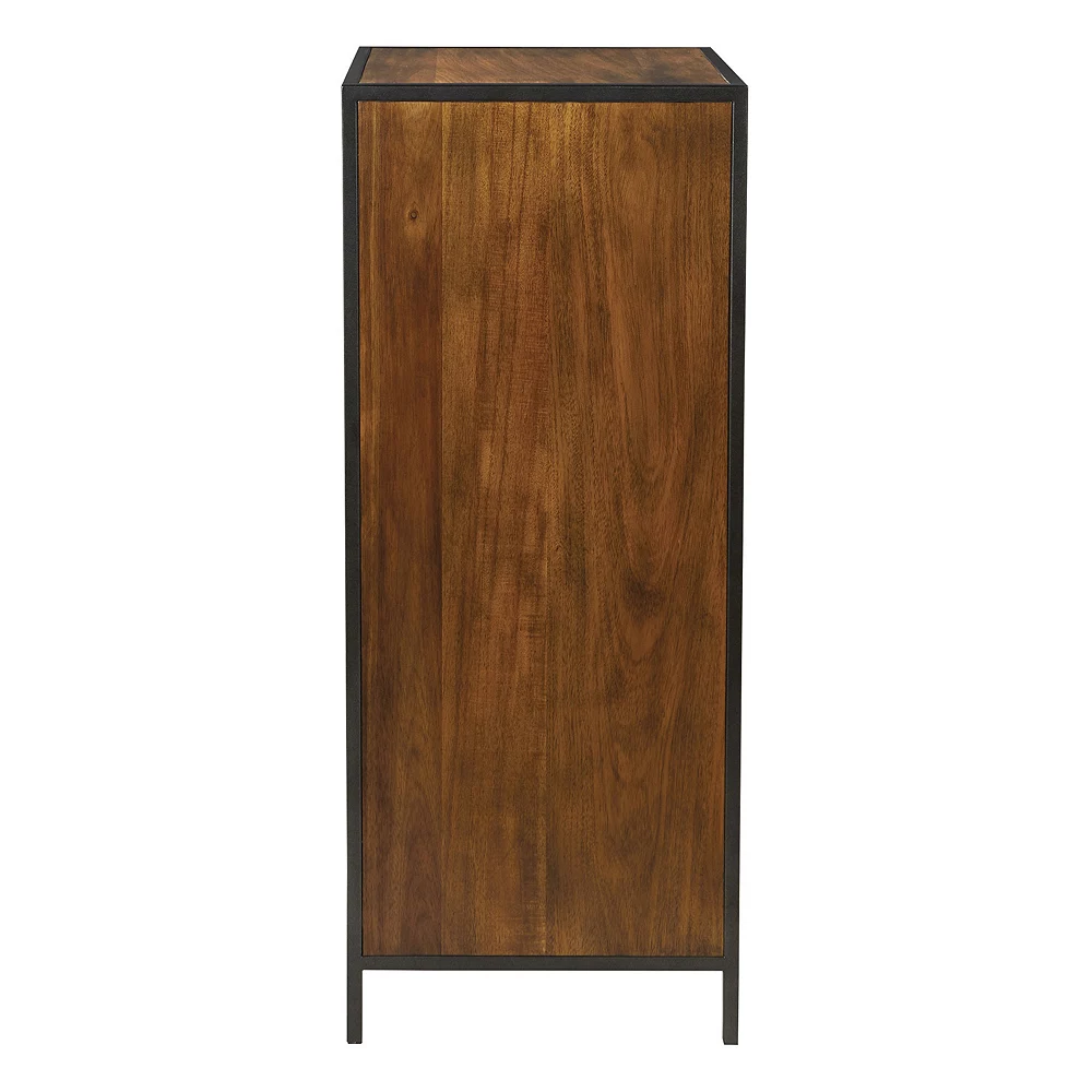 - Handsome woodgrain veneer, dovetail drawer front detailing and modern metal frame adds a modern industrial feel to any decor
