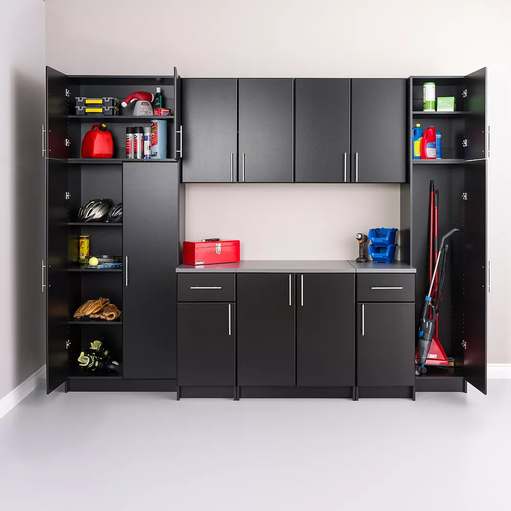 You’ll finally have an organized garage with this Prepac Elite A 112-in. Storage Cabinet 9-piece Set.