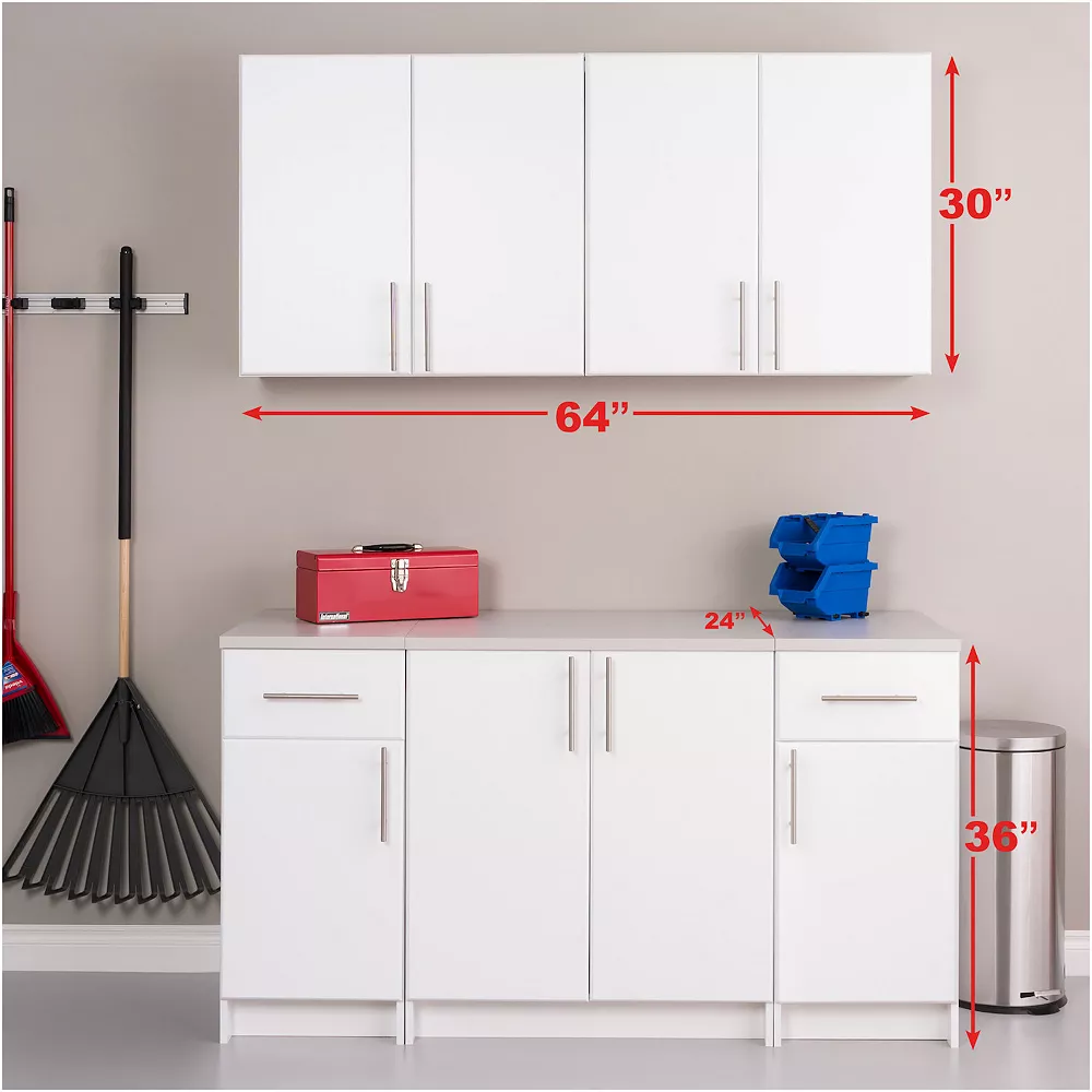 You’ll finally have an organized garage with this Prepac Elite B 64-in. Storage Cabinet & Wall Cabinet 5-piece Set.