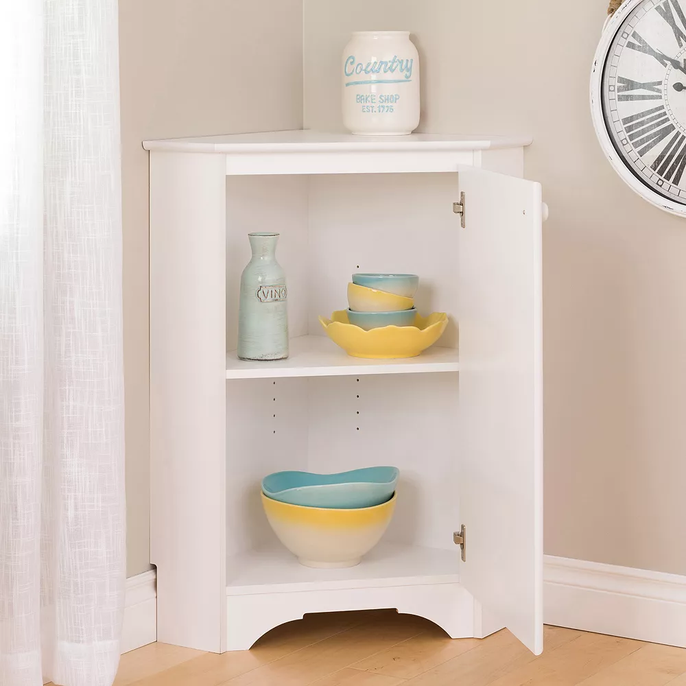 Add extra storage space to your room with this multipurpose Prepac Elite corner storage cabinet.