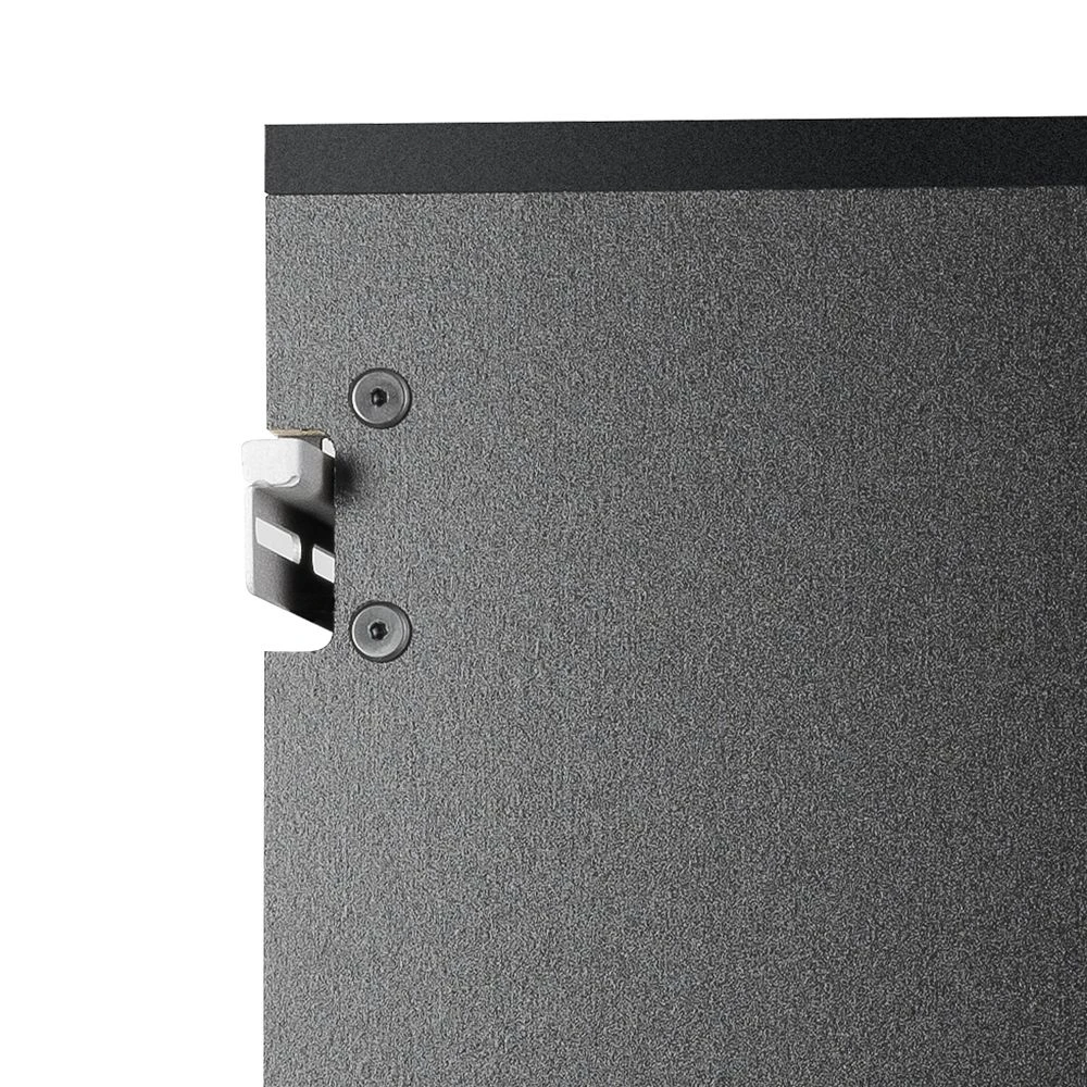 - Mounts securely to the wall with a heavy duty metal rail and hook system