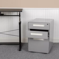 Emma+Oliver Emma And Oliver Ergonomic 3-Drawer Mobile Locking Filing Cabinet Storage Organizer-Gray