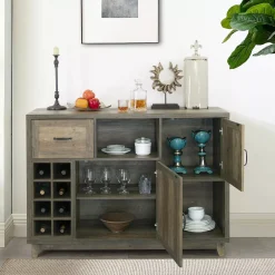 F.C Design FC Design 52″W Sideboard Storage Cabinet With Wine Racks, Storage Cabinets, Drawer, Large Dining Server Cupboard Buffet Table
