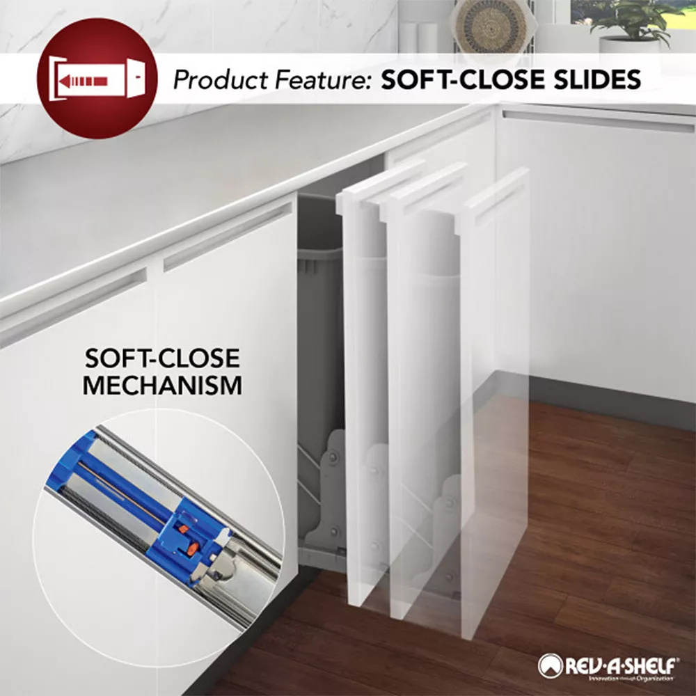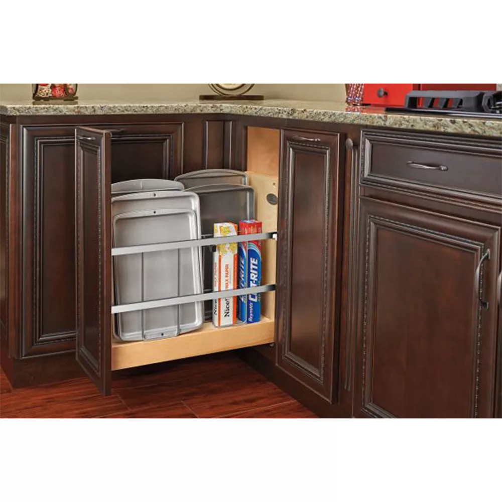 Create a custom storage rack right at home using the Rev-A-Shelf Soft Close Storage Divider. This kitchen storage organizer system is designed to fit existing wall cabinets to maximize hard-to-reach space. This package includes a wood organizer, adjustable dividers, and mounting hardware for an at-home DIY installation.