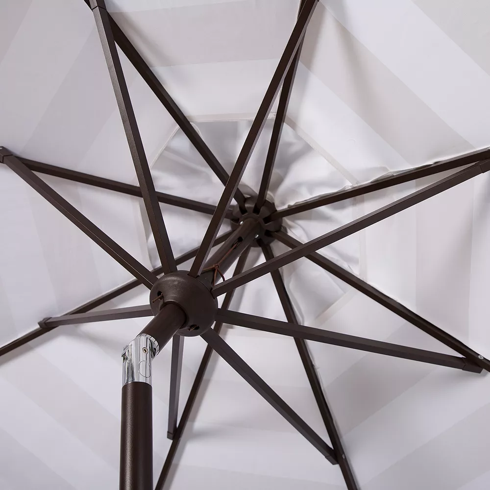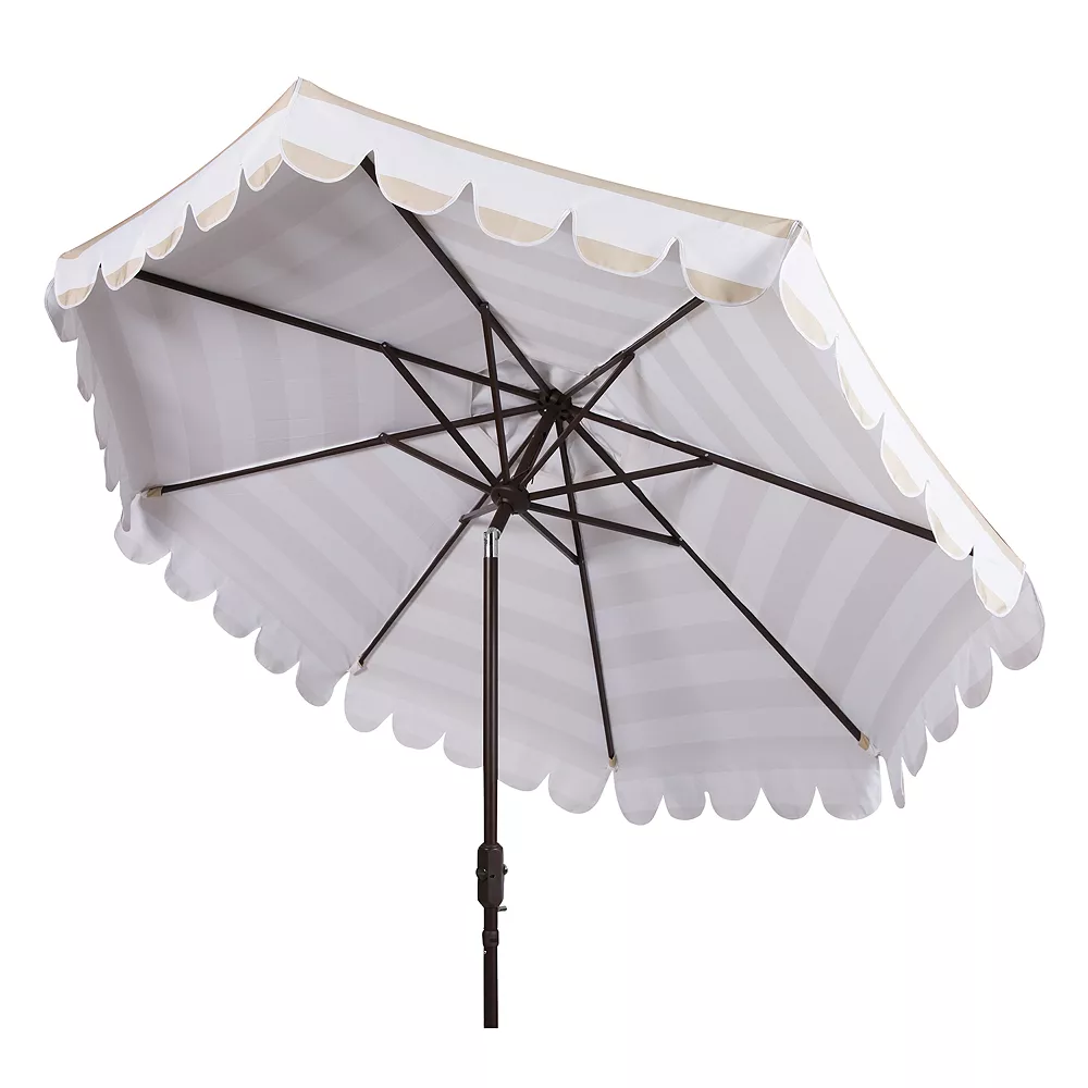 Add the final touch to your outdoor entertainment space with this Safavieh striped patio umbrella, featuring a scalloped trim for a retro look.
