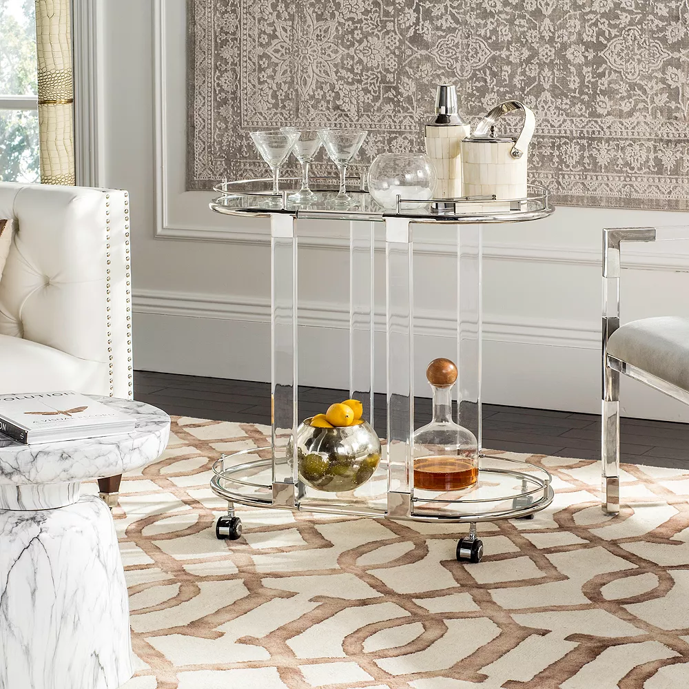 The Lennon Bar Trolley instantly lifts the spirits with sinuous glass and acrylic curves.